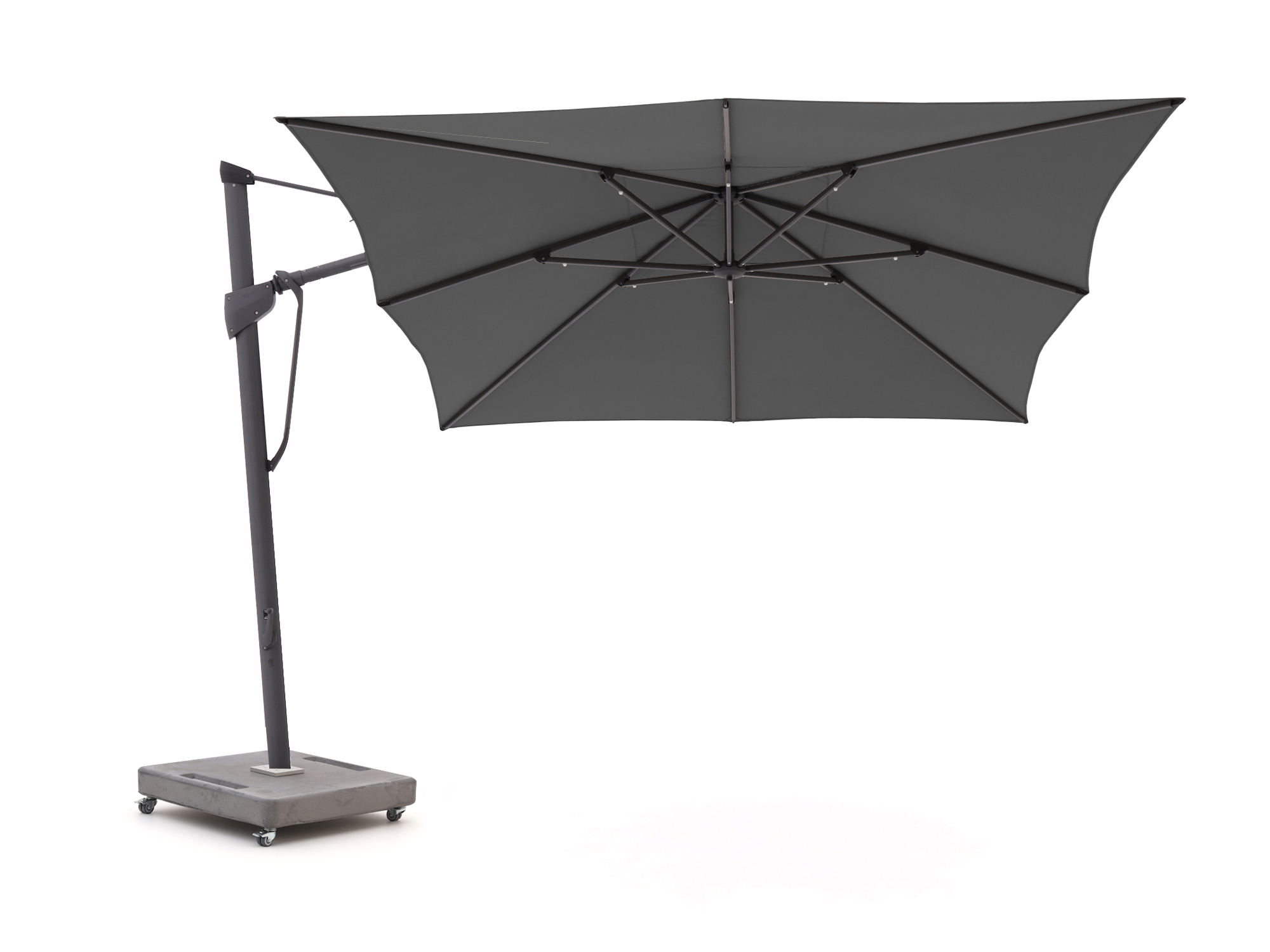 Dank der seitlich versetzten Aufhängung genießen Sie maximale Bewegungsfreiheit zwischen Gartentisch und Lounge-Set.