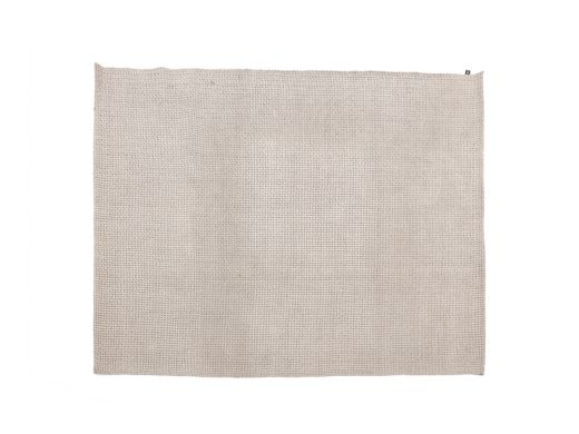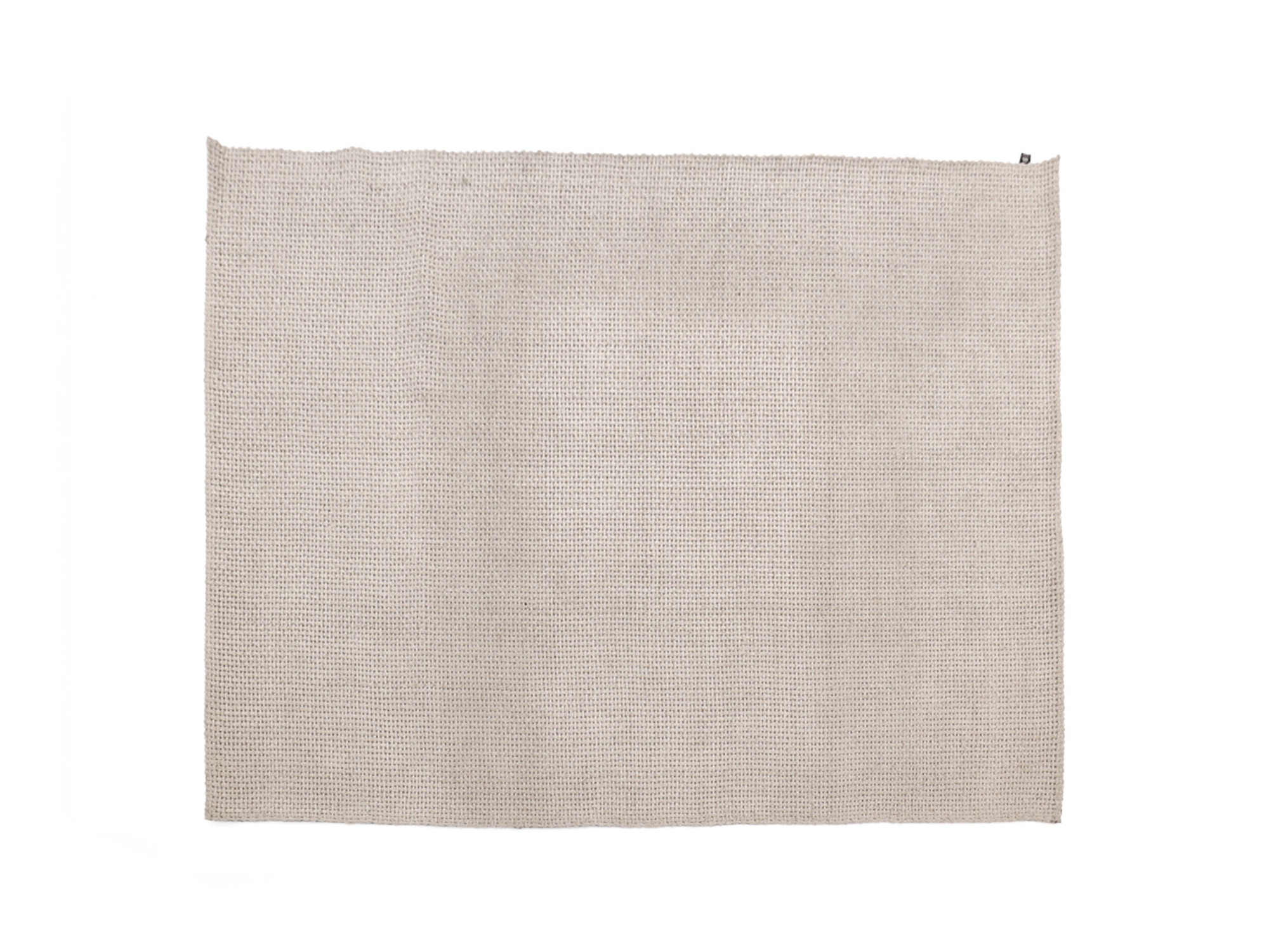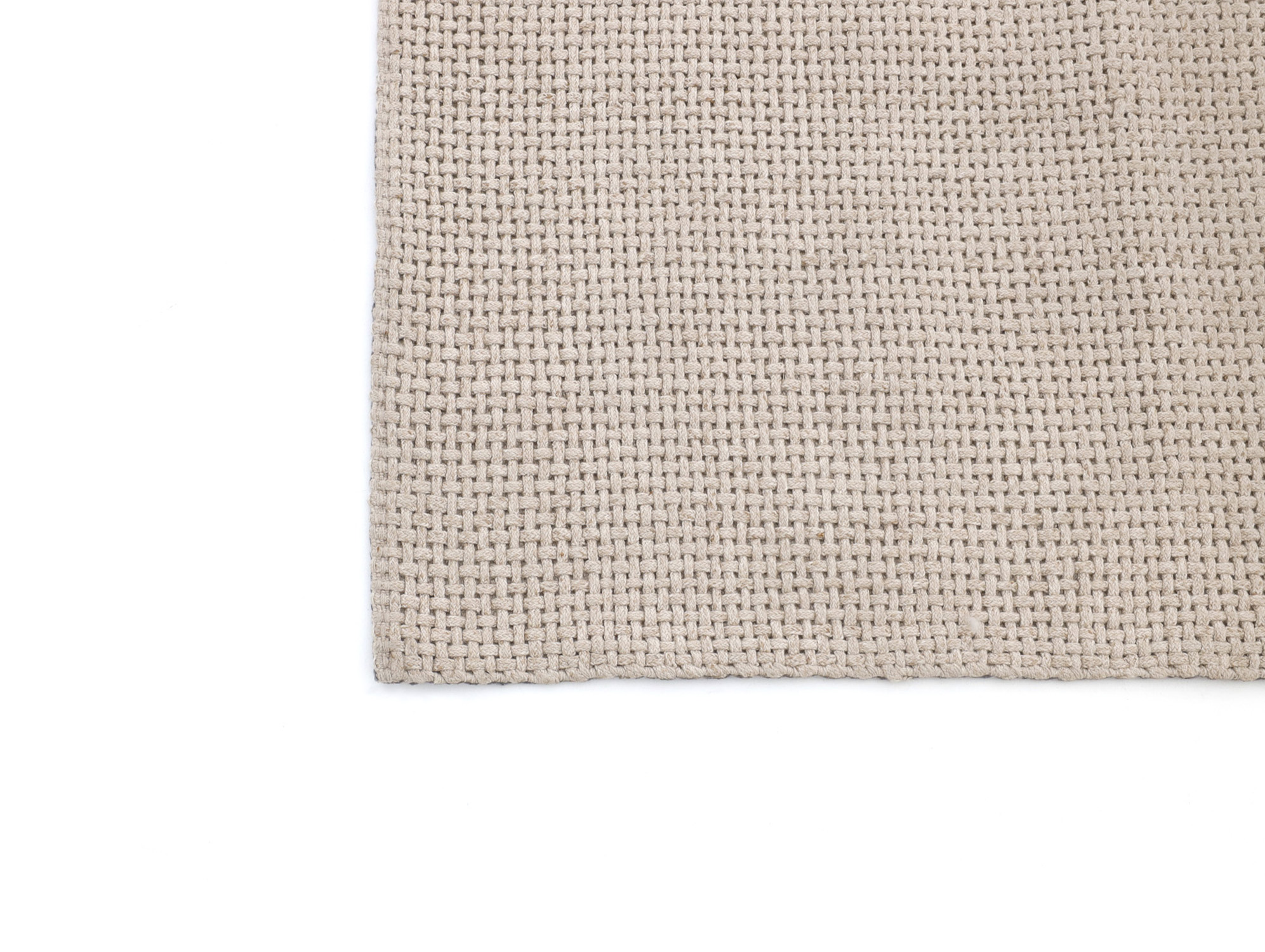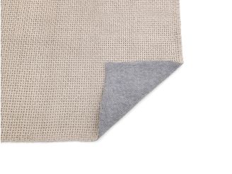 Detailfoto von der Unterseite eines hellgrauen Outdoor Teppichs