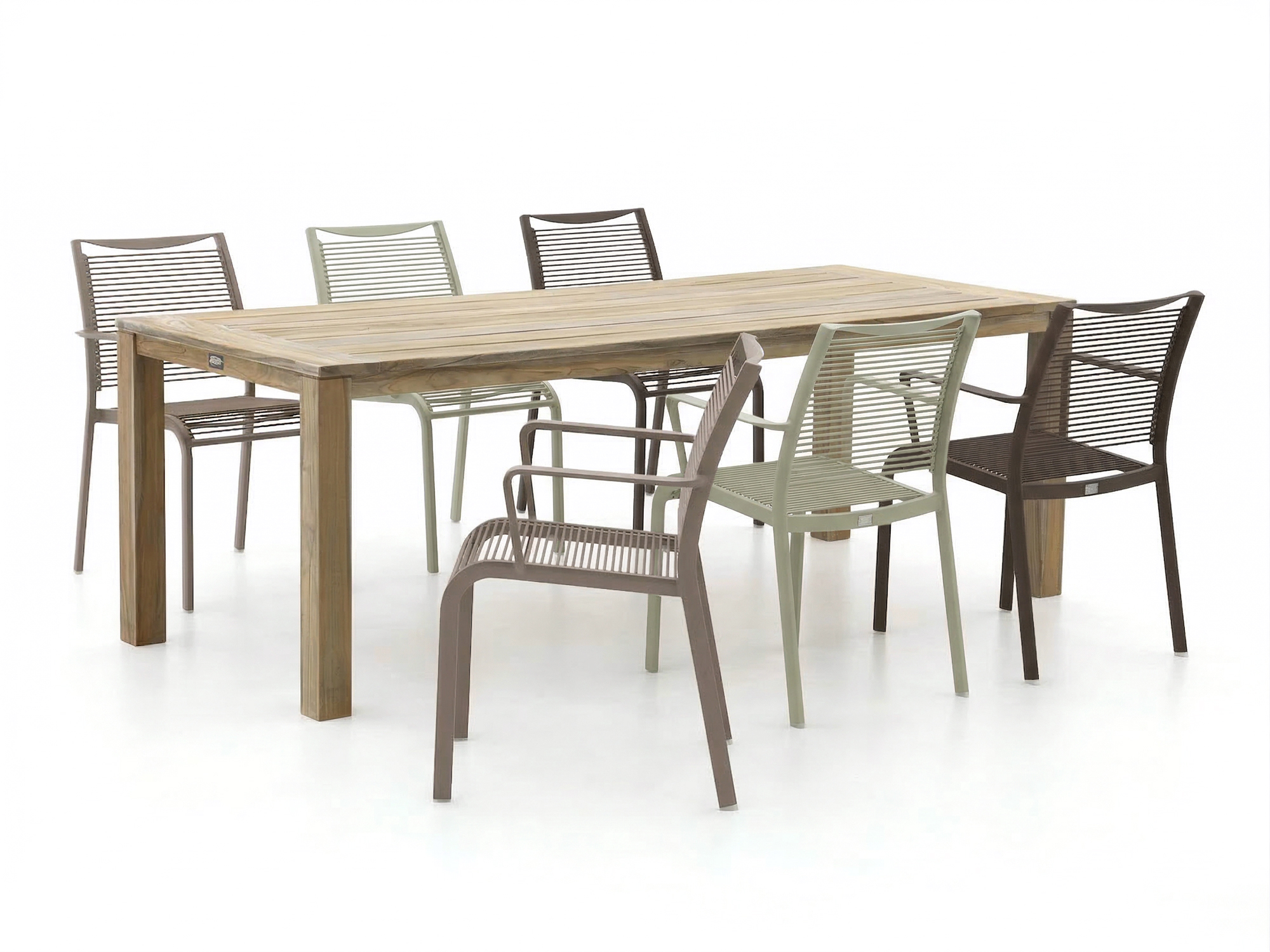 • Die Tischplatte aus robustem Teakholz widersteht allen Wetterbedingungen