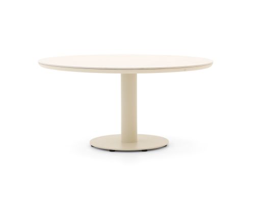 Der Apple Bee Melville Gartentisch rund ø 160cm ist ein runder Gartentisch für 6 Personen – ideal, wenn Sie gerne lange mit Familie oder Freunden zusammensitzen und alle sich gut sehen können. Das weiße Aluminiumgestell ist leicht, sodass Sie den Tisch mühelos verschieben können, wenn Sie Ihre Terrasse neu gestalten möchten. Die runde Tischplatte aus Sintered Stone in einem hellen Weißton ist robust und kratzfest. So können Sie Schalen, Gläser und Besteck unbesorgt abstellen. Mit einem Durchmesser von 160 cm haben Sie reichlich Platz für Teller, Salate und Brot, ohne dass jemand halb über den Tisch greifen muss, um die Sauce weiterzureichen. Durch die runde Form ist dieser Tisch eine naheliegende Wahl, wenn Sie es gerne besonders gesellig haben, aber keine scharfen Ecken entlang der Laufwege mögen.
