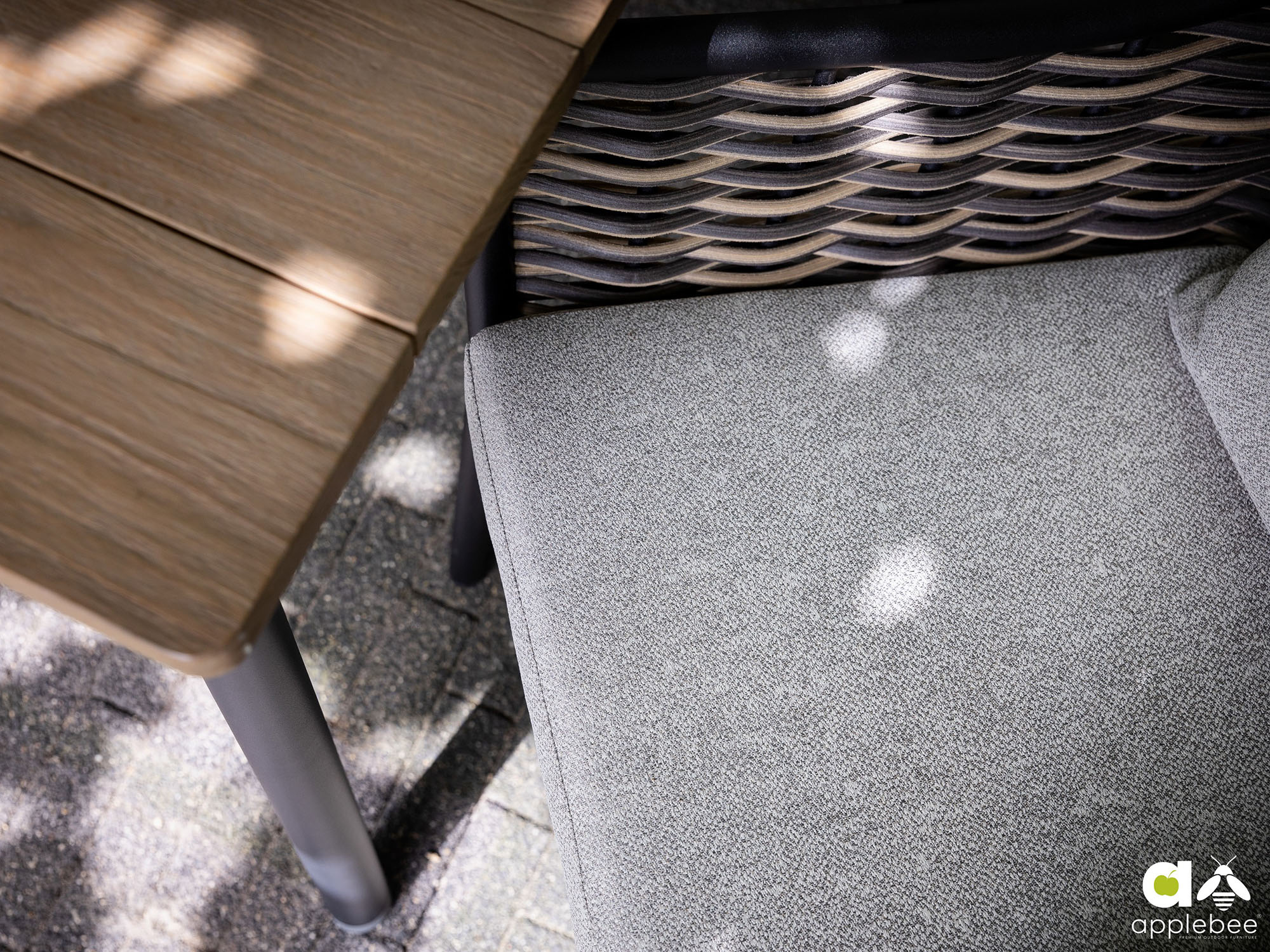 Black (inkl. Kissen Nature Grey) (Tischplatte = Teakholz)