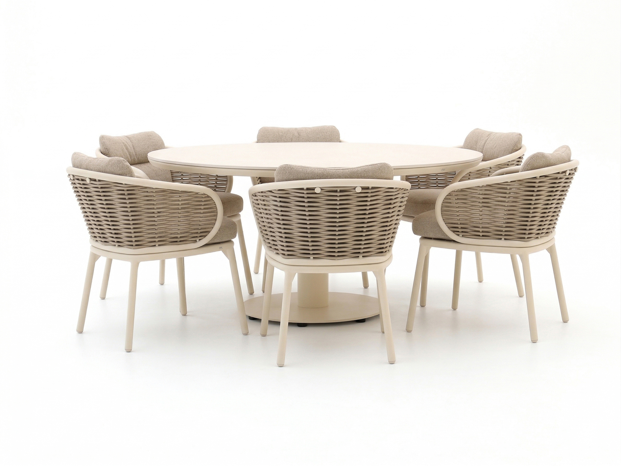 Bronze (Polyrattan = Oyster) (inkl. Kissen Natur) (Tischplatte = Sintered Stone Oyster)