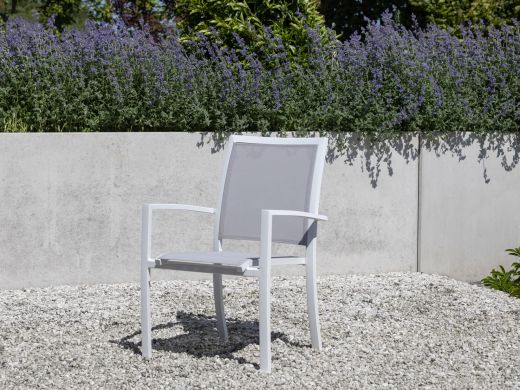 Textilene passt sich dem Körper an und sitzt bequem, auch wenn man etwas länger am Tisch bleibt