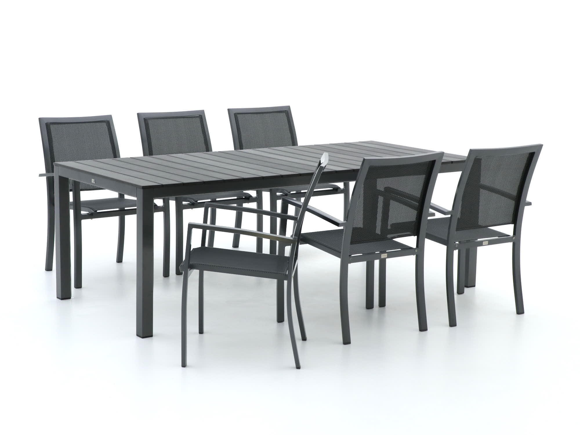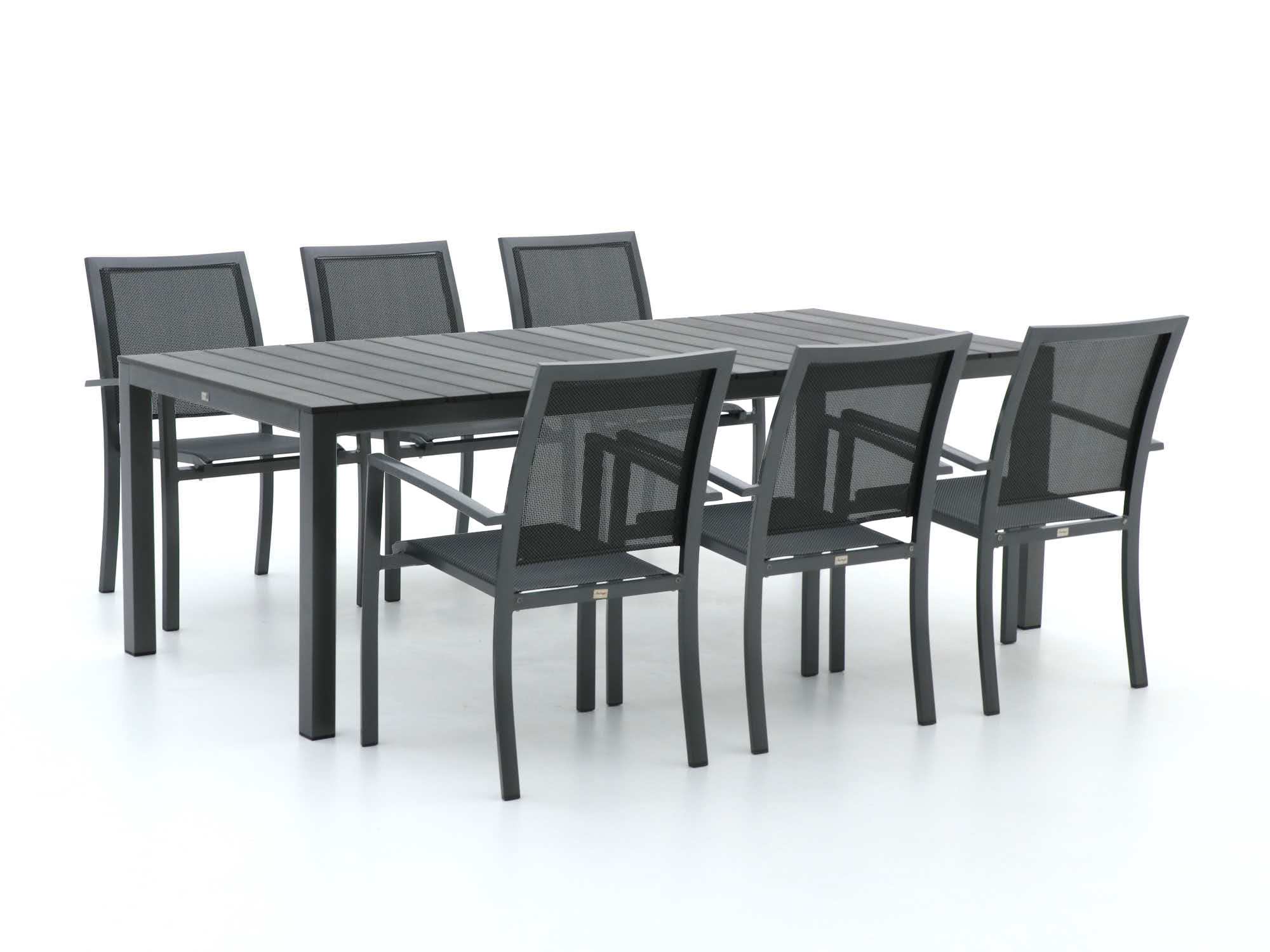 Ein gemütlicher Abend im Freien wird mit dem Bellagio Anzio/Fidenza Gartenmöbel-Set zum Vergnügen. Dieses Set bietet Platz für sechs Personen und ist ideal für gesellige Runden im Garten. Der Tisch aus Polywood sieht aus wie echtes Holz, ist aber aus Kunststoff und somit besonders pflegeleicht und widerstandsfähig gegen Wasser und Schmutz. Die Stühle sind mit Textilene bespannt, das sich angenehm dem Körper anpasst und auch bei langen Abenden für Komfort sorgt. Praktisch ist, dass die Stühle stapelbar sind – so sparen Sie Platz, wenn sie nicht gebraucht werden.