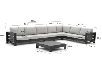 Das Bellagio Avolo Ecklounge-Set in der Farbe Charcoal ist die ideale Wahl für alle, die ihren Außenbereich in eine gemütliche Oase verwandeln möchten. Mit Platz für bis zu sieben Personen bietet es ausreichend Raum für gesellige Runden mit Familie und Freunden. Die bequemen Kissen in Grau-Anthrazit laden zum Verweilen ein und machen auch lange Abende im Freien zu einem Genuss. Das robuste Aluminiumgestell sorgt dafür, dass das Set stabil steht und wetterfest ist. Praktisch ist auch, dass die Kissenbezüge abnehmbar sind, was die Reinigung erleichtert.
