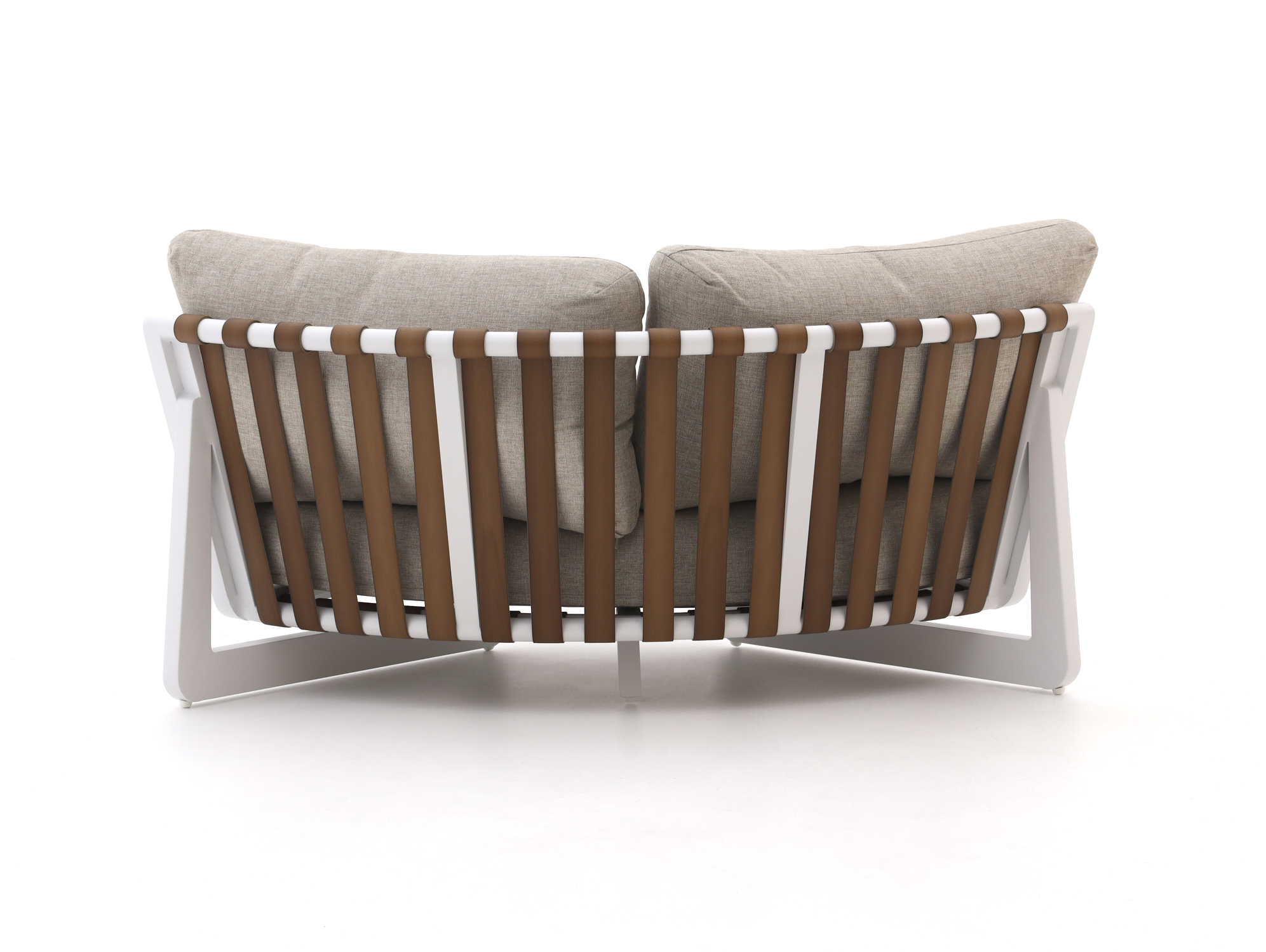 Weiß (PU-Gurte = Lederoptik) (Armlehnen = Teak) (inkl. Kissen)