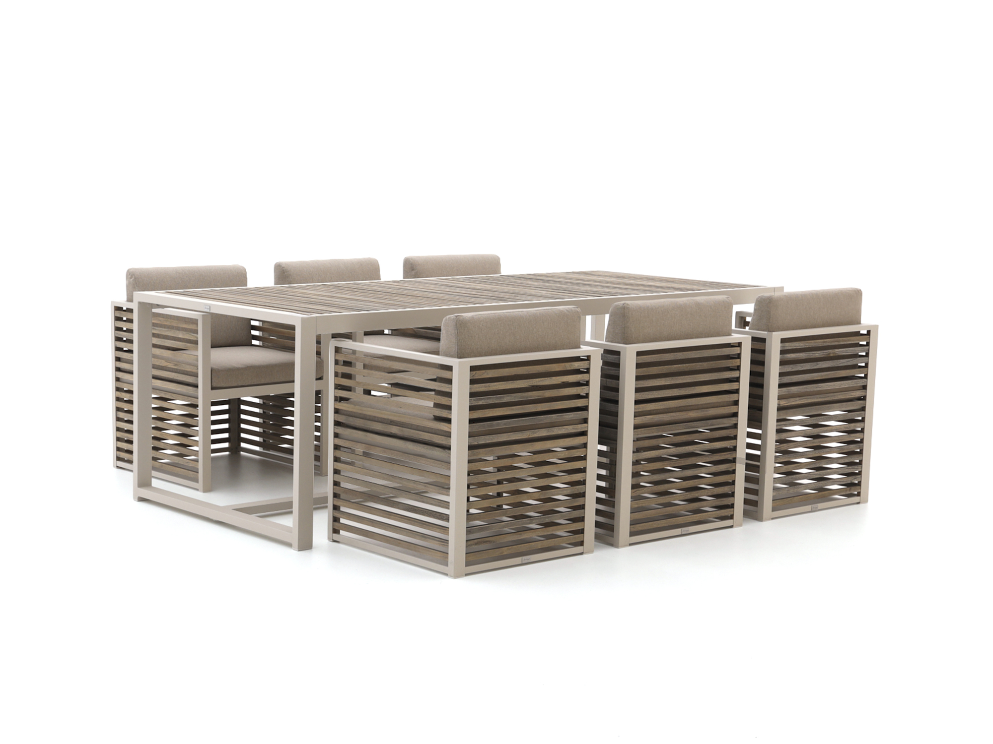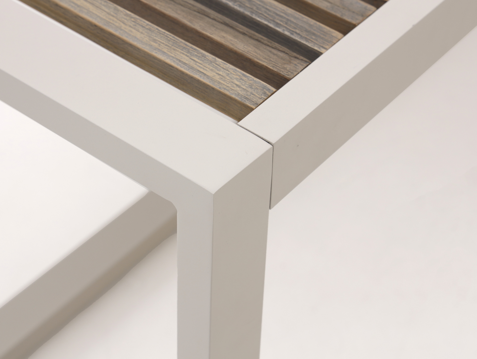 • Tischplatte mit Teak-Einlage: Eine robuste Naturholzplatte, die Wind und Wetter standhält und an der Sie täglich unbeschwert sitzen können.