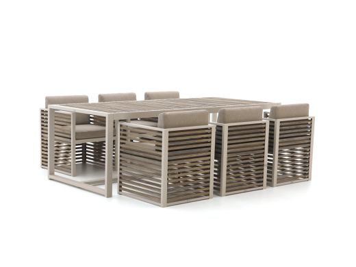 Das Bellagio Cadora Gartenmöbel-Set ist eine großzügige Essgruppe für 6 Personen – ideal, wenn Sie gern mit Familie oder Freunden draußen essen. Mit dem 240 cm langen Tisch haben Sie ausreichend Platz für Schalen, Getränke und vielleicht noch ein Spiel nebenbei. Das Set wird mit Kissen geliefert, sodass Sie sofort weich und bequem sitzen und nicht erst nach passenden losen Kissen suchen müssen. Dank der Teak-Einlage in der Tischplatte erhalten Sie einen robusten, natürlichen Tisch, an dem Sie einfach leben können: frühstücken, einen Drink genießen und an langen Sommerabenden gemütlich tafeln.