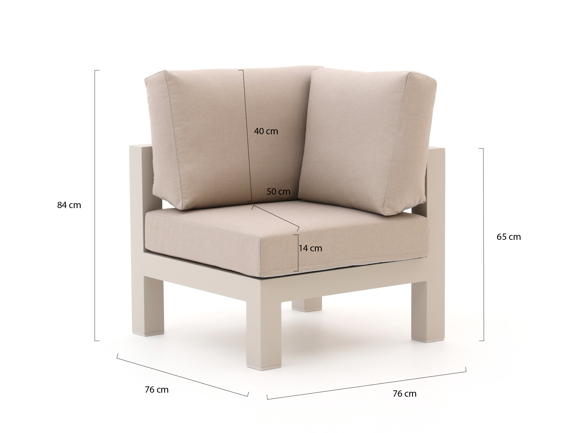 Das Bellagio Campazzo Lounge Eckmodul ist ein einzelnes Eckelement für 1 Person – ideal, wenn Sie Ihr bestehendes Lounge-Set erweitern oder eine neue Ecke gestalten möchten. Der Aluminiumrahmen ist leicht, so lässt sich das Element mühelos verschieben, wenn Sie Ihre Terrasse neu anordnen oder reinigen möchten. Der beige Bezug wirkt ruhig und neutral und lässt sich leicht mit anderen Möbeln kombinieren. Die Kissen sind inklusive: Modul hinstellen, Kissen darauf – und Sie können sofort Platz nehmen. Schon bald fragen Sie sich, warum Sie das nicht schon früher in die Ecke gestellt haben.