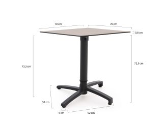 Der Bellagio Canzo Klapptisch 70x70cm ist ein kompakter, verstellbarer Gartentisch für alle, die wenig Platz haben und trotzdem gerne draußen essen oder etwas trinken. Dank dem grauen Aluminiumgestell und der graubraunen HPL-Kunststofftischplatte erhalten Sie einen stabilen, pflegeleichten Tisch, der nicht schnell verkratzt und unempfindlich gegen Flecken ist. Praktisch auf dem Balkon, der kleinen Terrasse oder als zusätzlicher Tisch neben Ihrem Lounge-Set. Die Höhe des Tisches ist von 73 bis 109 cm verstellbar, sodass Sie ihn als niedrigen Esstisch oder als hohen Bartisch nutzen können. Sind Sie fertig? Dann klappen Sie den Tisch einfach zusammen und stellen ihn schmal an die Wand.