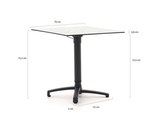 • Kompaktes Format 70x70cm: Passt perfekt auf den Balkon oder eine kleine Terrasse und bietet dennoch genügend Platz für Teller und Gläser.