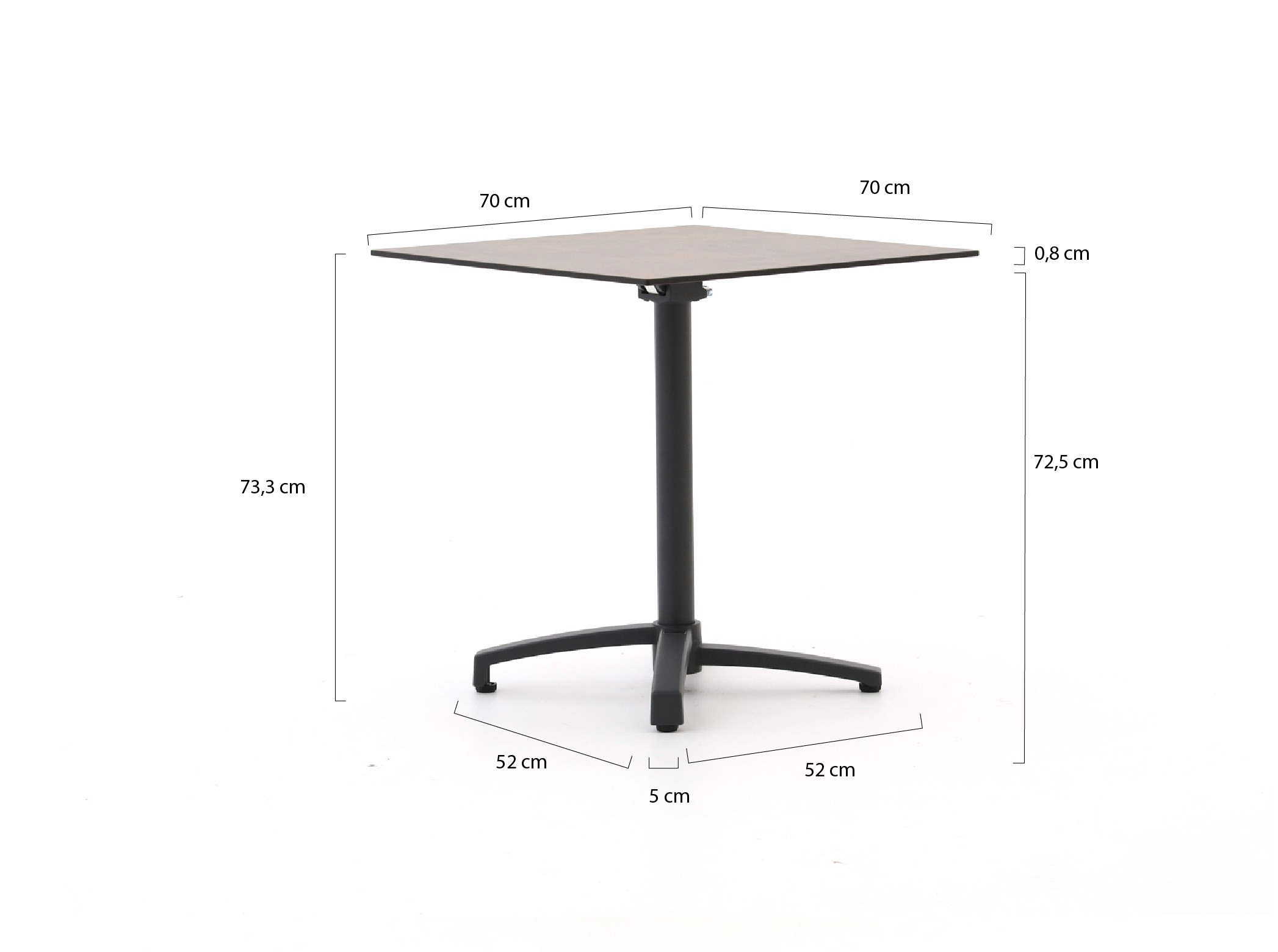 • Kompakte Größe 70x70 cm: Sie sitzen gemütlich mit 2 bis 4 Personen, ohne dass der Tisch die ganze Terrasse einnimmt.