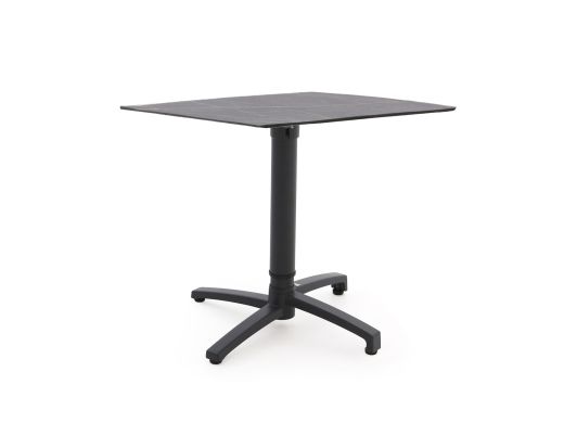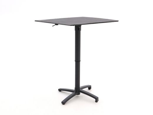 Der Bellagio Canzo ist ein kompakter Klapptisch mit 80x80 cm, ideal, wenn Sie eine kleinere Terrasse oder einen Balkon haben und dennoch draußen bequem essen oder etwas trinken möchten. Die Tischplatte besteht aus robustem Kunststoff (HPL) in Schwarz, das Gestell aus Aluminium in Dunkelgrau: zusammen ergibt das einen stabilen Tisch, der wenig Pflege braucht und sich nach dem Essen leicht reinigen lässt. Praktisch: Sie können die Tischhöhe von 73 bis 109 cm verstellen und ihn so als niedrigen Esstisch oder höheren Bartisch nutzen – ganz, wie Sie es brauchen. Wenn Sie fertig sind, klappen Sie die Platte einfach hoch, sodass der Tisch an der Wand nur wenig Platz einnimmt. Suchen Sie einen flexiblen Tisch für zwei Personen, der nicht im Weg steht, liegen Sie mit diesem Klapptisch genau richtig.