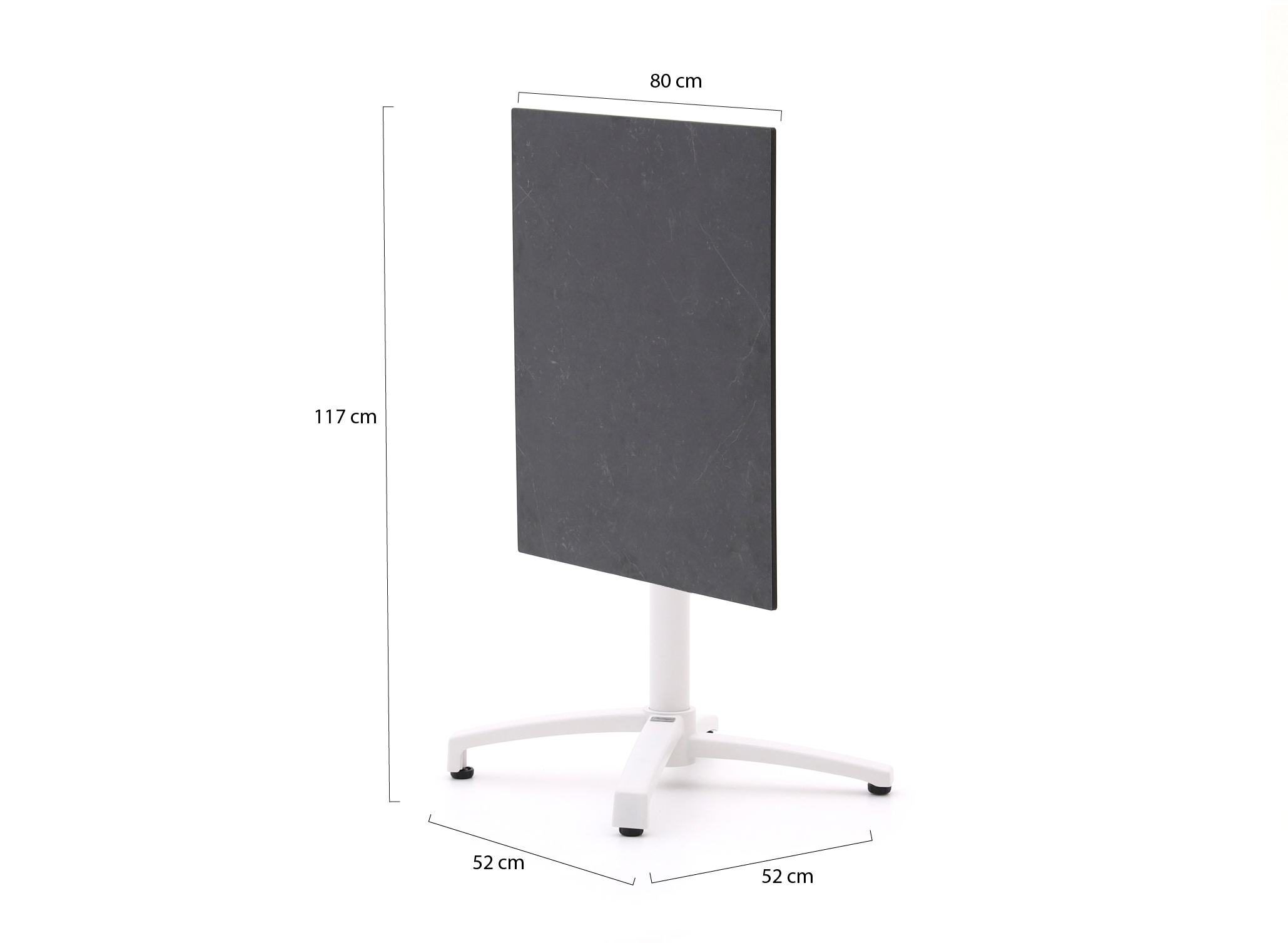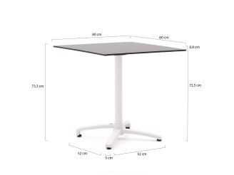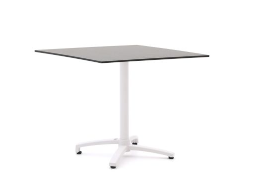 Der Bellagio Canzo Klapptisch 80x80cm ist ein quadratischer Gartentisch, den Sie im Handumdrehen zusammenklappen – ideal, wenn Sie nur eine kleine Terrasse oder einen Balkon haben und den Platz nicht zustellen möchten. Das weiße Aluminiumgestell ist leicht, so dass Sie den Tisch problemlos versetzen können, wenn Sie einmal anders sitzen wollen. Die schwarze HPL-Tischplatte aus Kunststoff ist robust und pflegeleicht, sodass Sie beim Essen oder beim gemütlichen Drink ganz entspannt Teller, Gläser und auch einen Topf darauf abstellen. Mit 80x80 cm bietet der Tisch ausreichend Platz für 2 bis 4 Personen, ohne viel Raum einzunehmen. Suchen Sie einen praktischen Tisch, den Sie nach Gebrauch schnell platzsparend an die Wand stellen, dann ist dieser Klapptisch eine sehr gute Wahl.