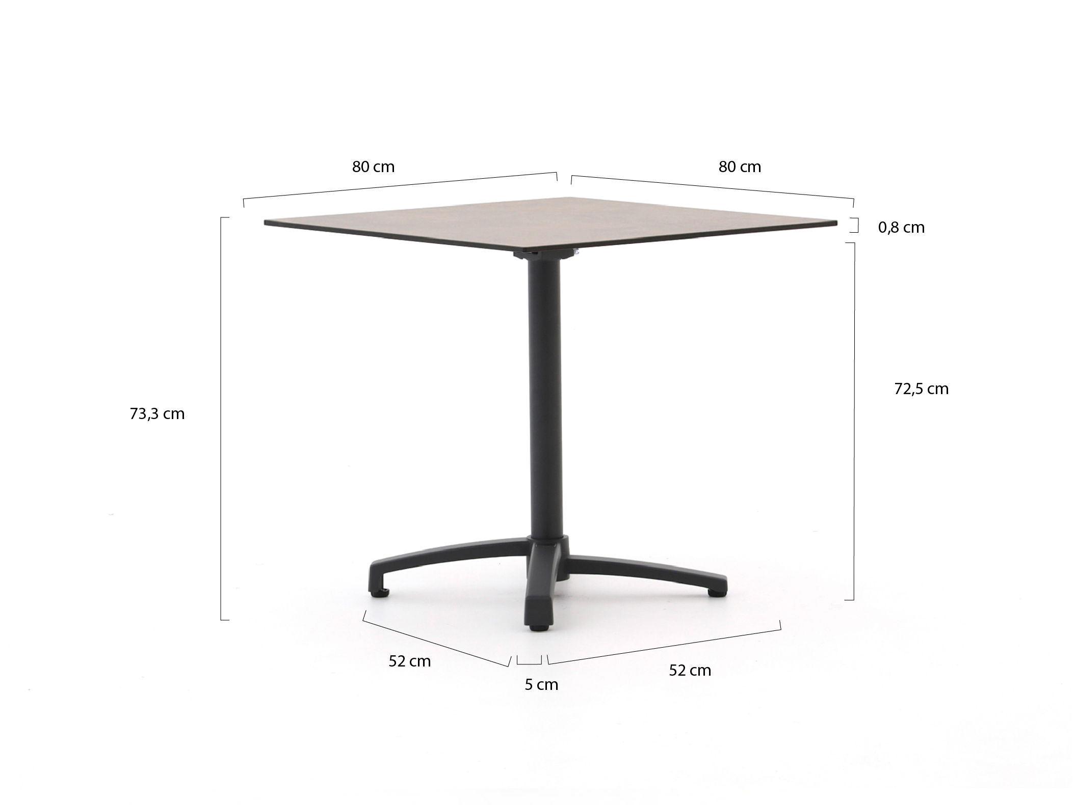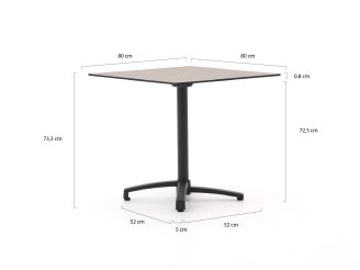 • 80x80 cm Tischplatte: Groß genug für 2 bis 4 Personen, aber so kompakt, dass er auch auf kleineren Flächen gut passt.