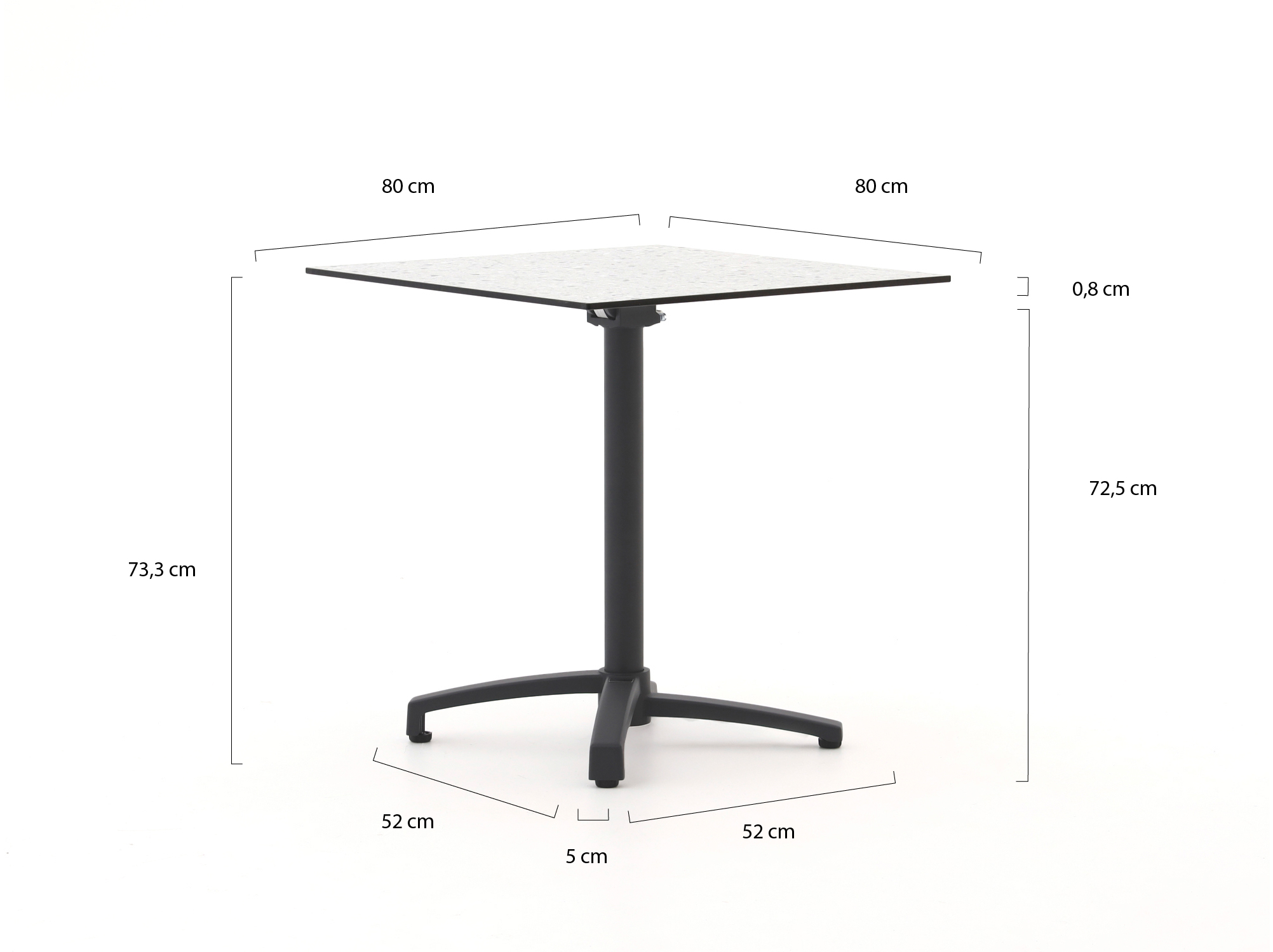 • Kompaktes Maß 80x80 cm: Es passen 2 bis 4 Stühle darum, ohne dass Ihr gesamter Balkon oder Ihre Terrasse vollgestellt ist.