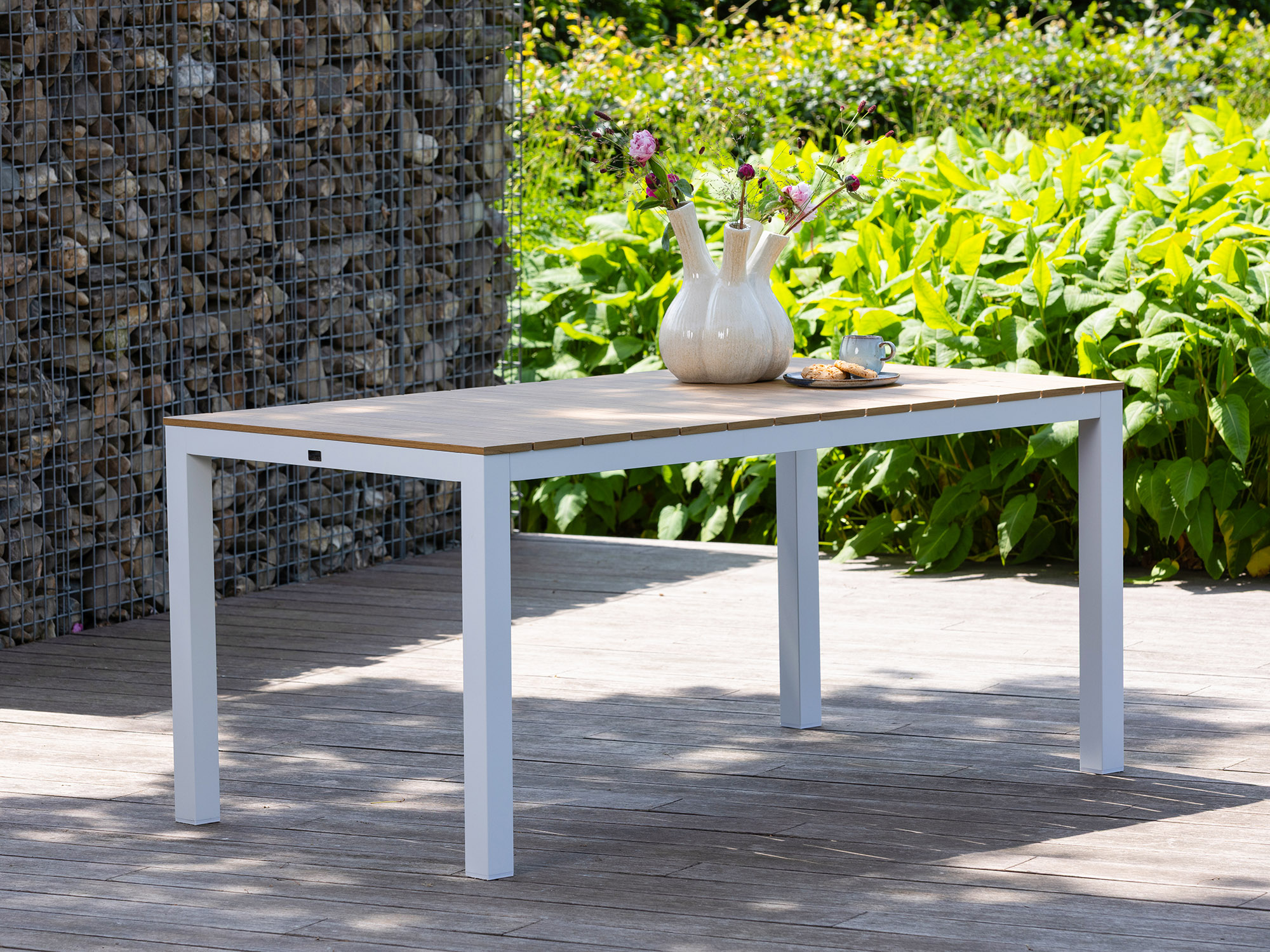 Der Bellagio Fidenza Gartentisch ist ein rechteckiger Esstisch für 4 Personen – ideal, wenn Sie kompakt sitzen möchten und trotzdem genug Platz für Teller und Schalen haben. Das weiße Aluminiumgestell in Kombination mit der Polywood Tischplatte in Teakoptik sorgt für die warme Ausstrahlung von Holz, ohne dass viel Pflege nötig ist. Der Tisch ist 160x90 cm groß und 75 cm hoch, also perfekt, um beim Essen oder bei einer langen Runde mit Getränken bequem und aufrecht zu sitzen. Haben Sie einmal mehr Gäste, können Sie an den Stirnseiten einfach zusätzliche Stühle dazustellen. Suchen Sie einen klaren, hellen Tisch, der sich mühelos mit verschiedenen Stühlen kombinieren lässt, sitzen Sie hier im wahrsten Sinne des Wortes richtig.