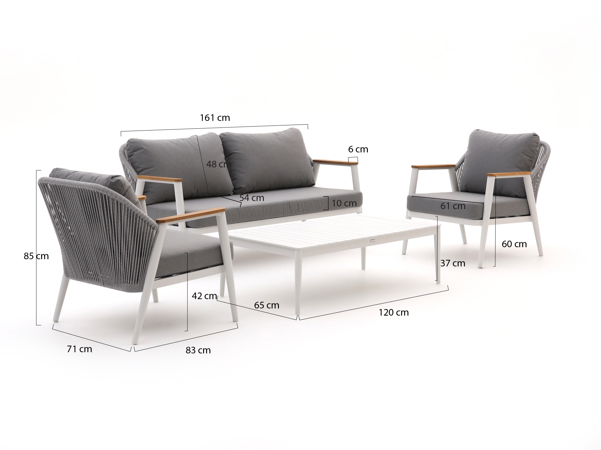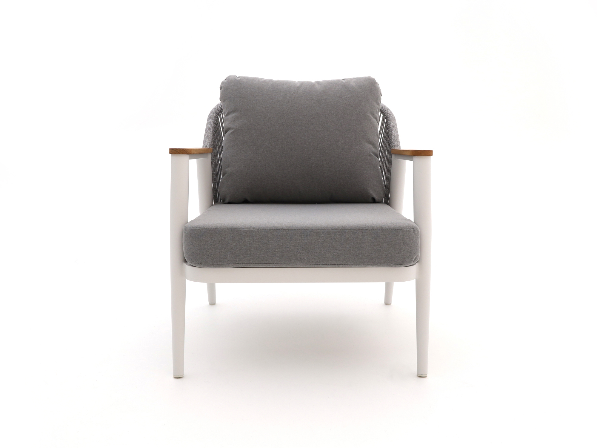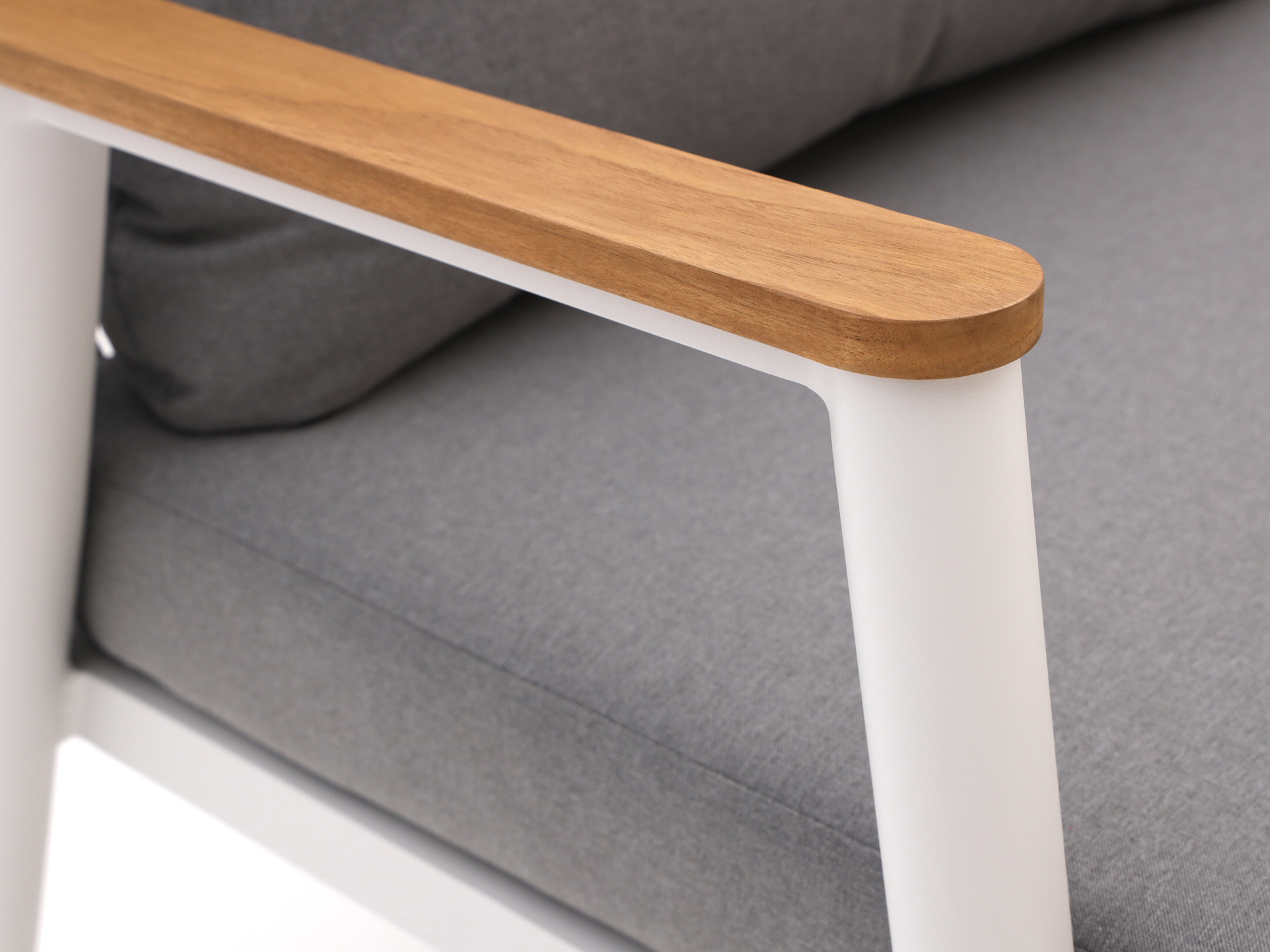 Teakholz-Armlehnen: Die Armlehnen aus Teakholz sind nicht nur stabil, sondern verleihen dem Set auch eine natürliche Note.