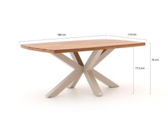 Der Bellagio Induno dänisch ovale Gartentisch ist ein stabiler Esstisch für alle, die gerne lange mit 4 bis 6 Personen draußen sitzen und einen ruhigen, natürlichen Look im Garten bevorzugen. Die Tischplatte aus Teakholz (natural teak) verleiht jedem Stuhl sofort Wärme und Atmosphäre, während das Aluminiumgestell in Gebrochen Weiß die Tafel leicht im Gewicht hält. So können Sie den Tisch relativ einfach versetzen, wenn Sie Ihre Terrasse neu einteilen möchten. Mit 180x110 cm haben Sie ausreichend Platz für Teller, Platten und eine Karaffe, ohne dass der Tisch direkt die gesamte Terrasse einnimmt. Das Teakholz können Sie natürlich vergrauen lassen für einen coolen, natürlichen Look oder mit einem Farbprotektor pflegen, wenn Sie den warmen Farbton lieber länger erhalten möchten.