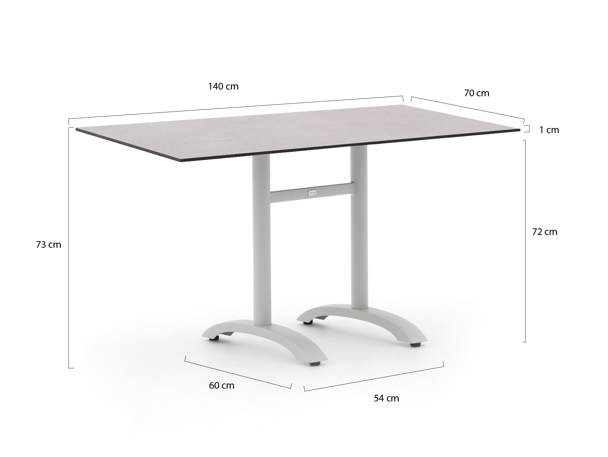 Bellagio Canzo tafelblad 140x80 cm t.b.v. inklapbaar pootstel (dubbel)   + 0,-
