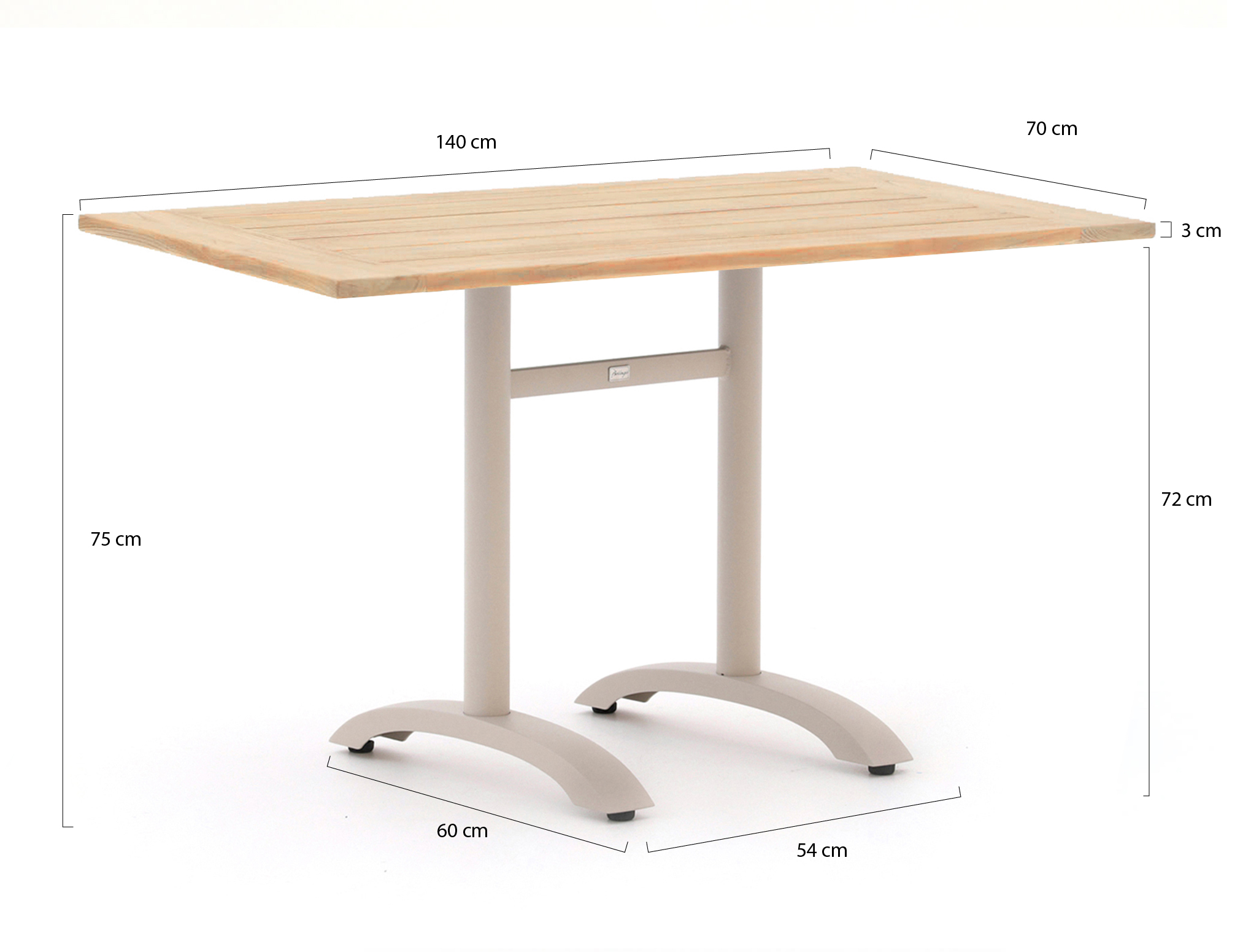 Bellagio Canzo Tischplatte 140x80cm t.b.v. inklapbaar pootstel (dubbel)   + 0,-