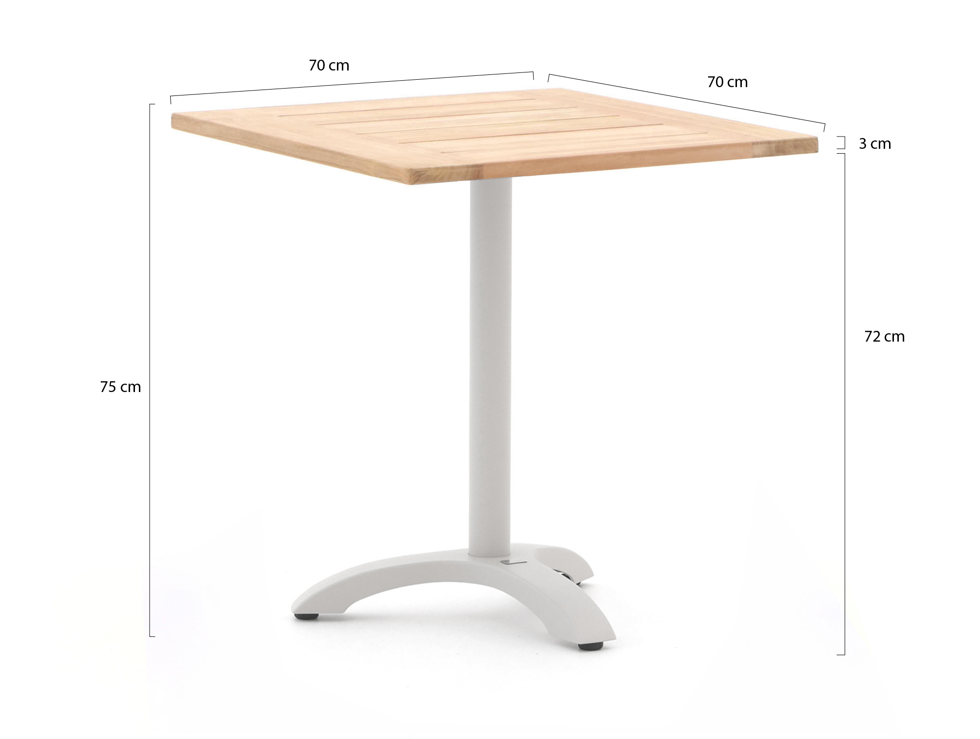 • Kompakte Größe 70 × 70 cm: nutzt den vorhandenen Platz auf Balkon oder kleiner Terrasse effizient und bietet dennoch Fläche für Geschirr und Getränke.