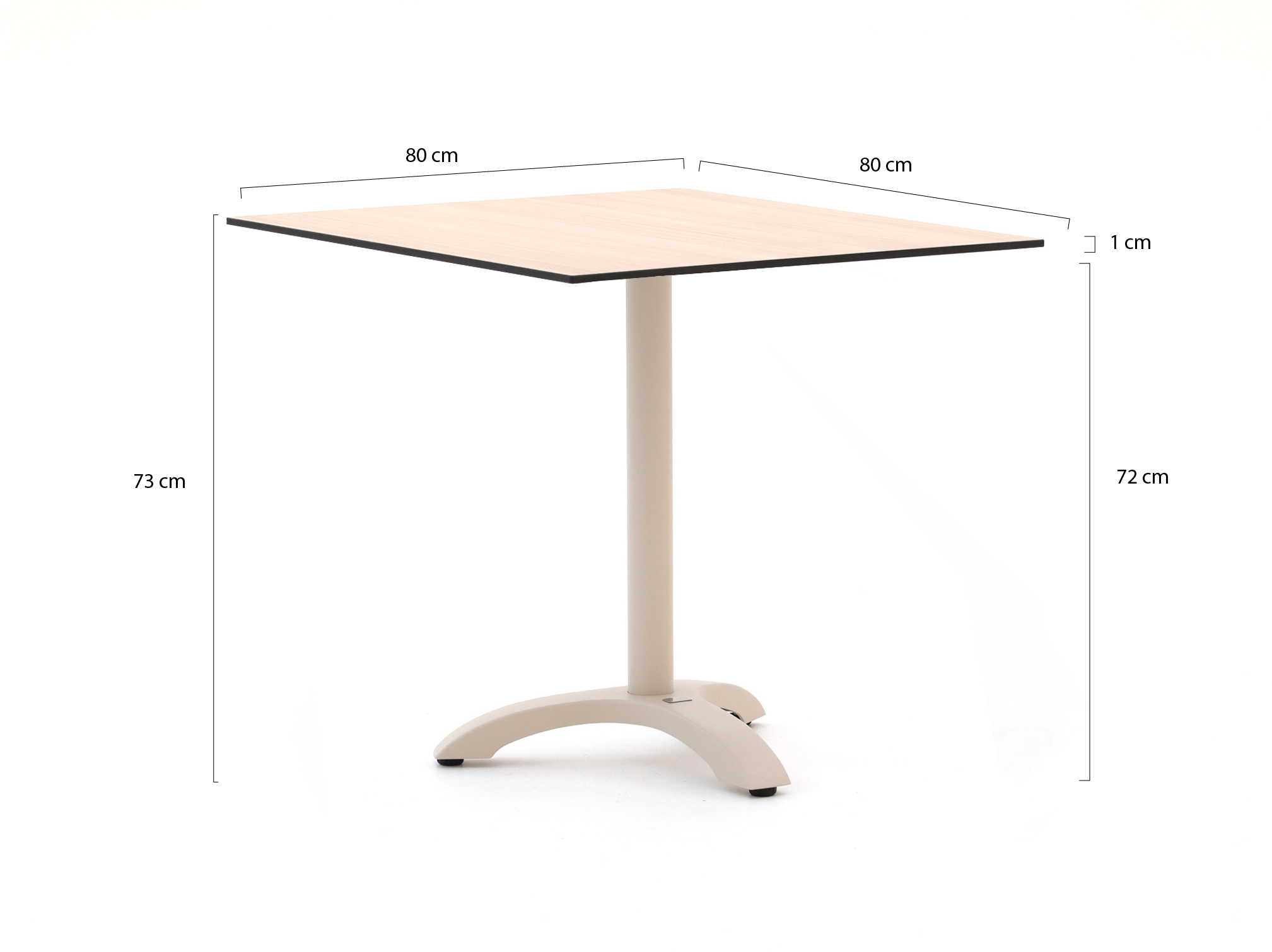 Bellagio Canzo Tischplatte 80x80 cm t.b.v. inklapbaar pootstel (enkel)   + 0,-