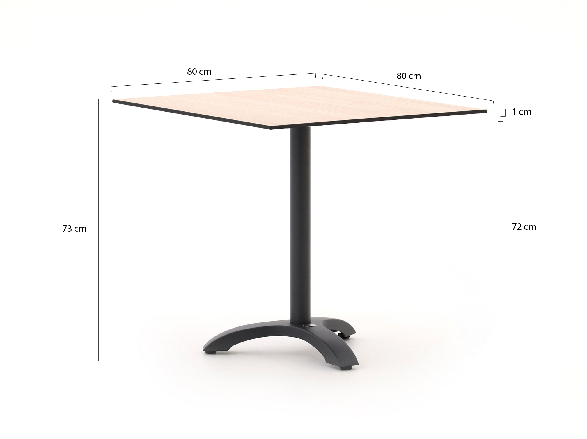 Bellagio Canzo Tischplatte 80x80 cm t.b.v. inklapbaar pootstel (enkel)   + 0,-
