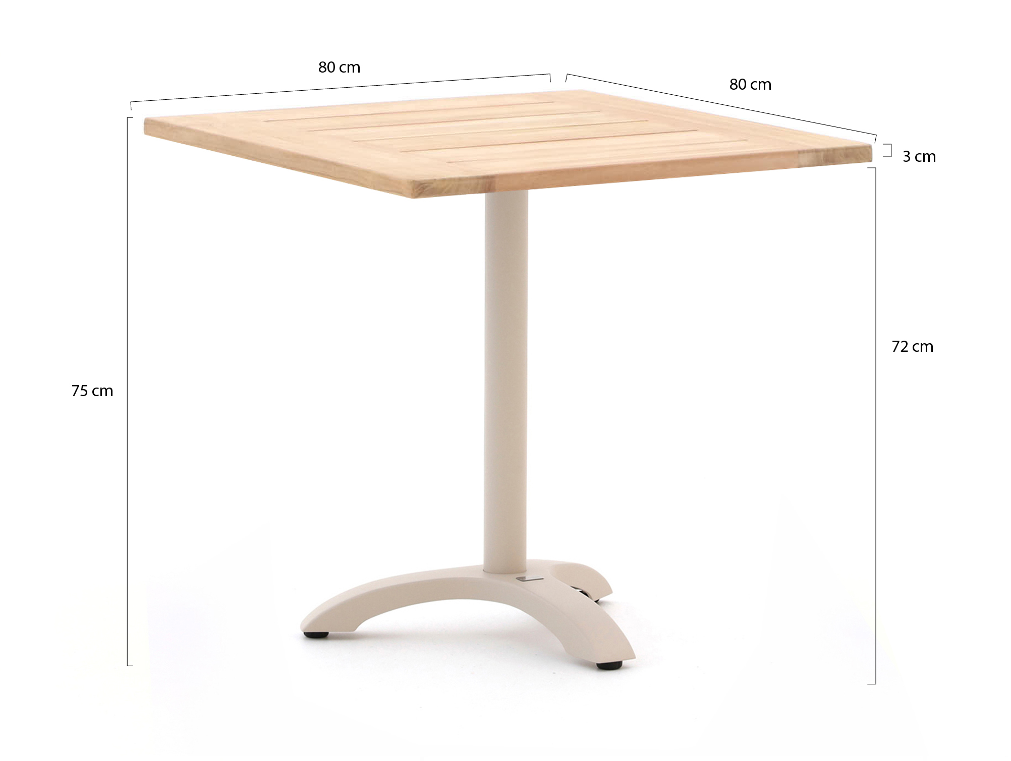 Bellagio Canzo Tischplatte 80x80cm t.b.v. inklapbaar pootstel (enkel)   + 0,-