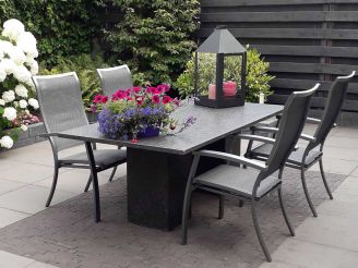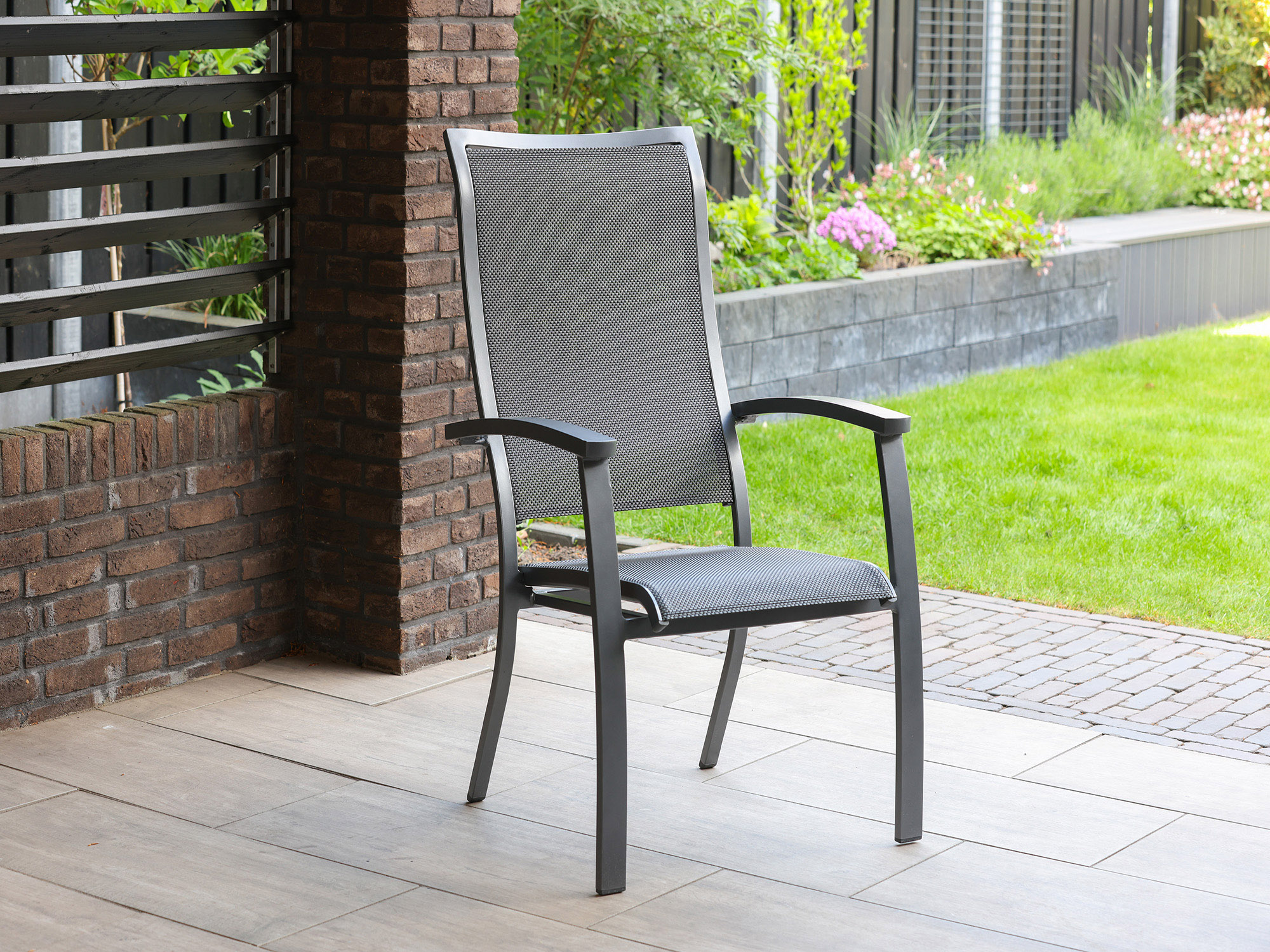 Sitzfläche aus Textilene: Diese passt sich Ihrem Körper an und bietet auch bei langen Abenden am Tisch einen hohen Sitzkomfort.