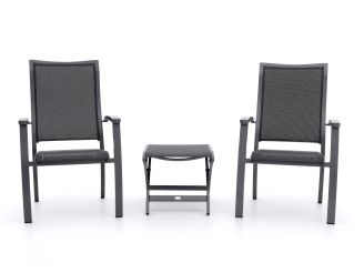 Das Bellagio Lugo/Pronto Gartenmöbel-Set ist die ideale Lösung für Ihren Balkon. Es besteht aus zwei bequemen Stühlen und einem praktischen Tisch, die alle aus robustem Aluminium gefertigt sind. Das Set ist stapelbar, was es besonders platzsparend macht – perfekt für kleinere Außenbereiche. Die Sitzflächen aus Textilene passen sich angenehm Ihrem Körper an und bieten auch bei längeren Sitzzeiten hohen Komfort. Genießen Sie entspannte Stunden im Freien mit diesem widerstandsfähigen und pflegeleichten Set.