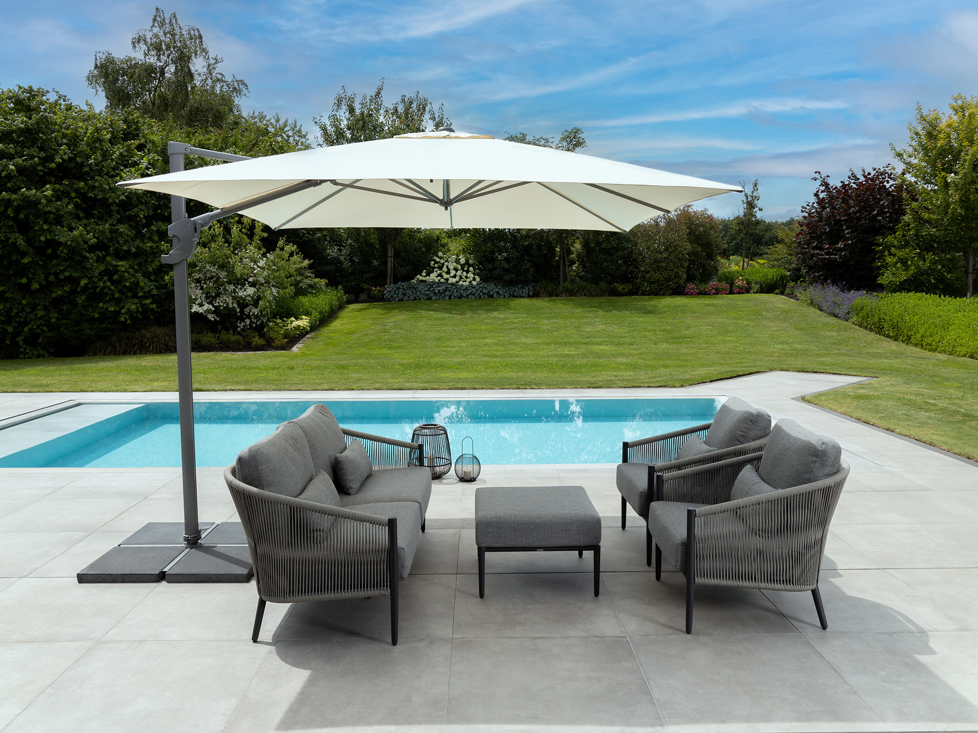 Robustes Aluminiumgestell: Das Gestell ist wetterbeständig und pflegeleicht, was es ideal für den Außenbereich macht.
