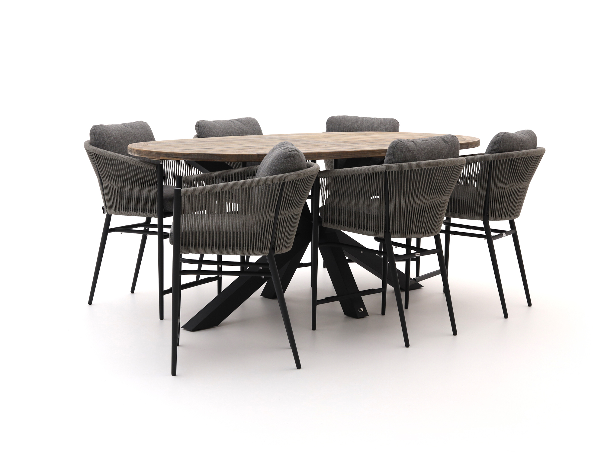 Das Bellagio Mineo/ROUGH-Y Ellips Gartenmöbel-Set ist eine robuste Wahl für Ihren Außenbereich. Mit Platz für sechs Personen bietet es ausreichend Raum für gesellige Runden im Freien. Der Tisch aus Old Teak Greywash verleiht dem Set eine natürliche und zeitlose Optik, während die Stühle mit bequemen Kissen ausgestattet sind, die für zusätzlichen Komfort sorgen. Das Set ist aus widerstandsfähigen Materialien gefertigt, die jedem Wetter standhalten, sodass Sie lange Freude daran haben werden.