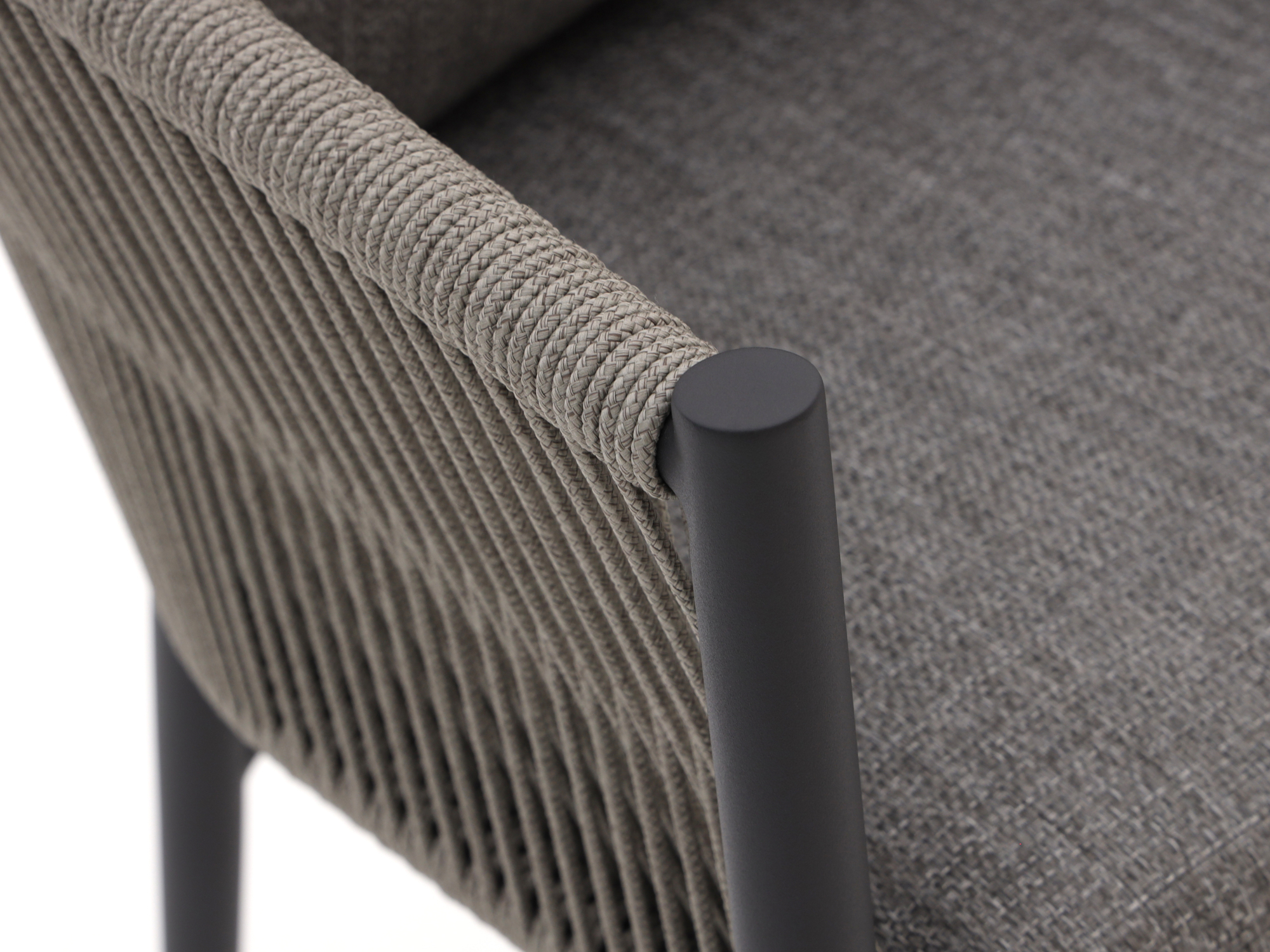 Bequemes Rope-Material: Die Sitzflächen der Stühle sind aus fest geflochtenem Rope, das schnell trocknet und auch bei Sonneneinstrahlung angenehm kühl bleibt.