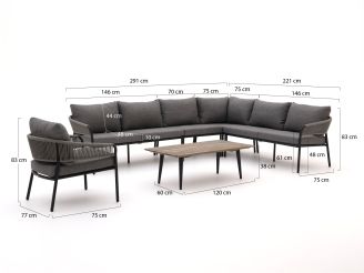 Das Bellagio Nova Siri/ROUGH-K Ecklounge-Set ist eine stilvolle Ergänzung für Ihren Garten. Mit Platz für bis zu sieben Personen bietet es genügend Raum für gesellige Runden im Freien. Das Set besticht durch seine robuste Bauweise aus Rope, das nicht nur widerstandsfähig, sondern auch pflegeleicht ist. Die bequemen Kissen in Grau-Anthrazit sorgen für zusätzlichen Komfort und sind dank abnehmbarer Bezüge einfach zu reinigen. Der Tisch mit einer Platte aus Old Teak Greywash rundet das Set harmonisch ab und verleiht ihm einen natürlichen Look.