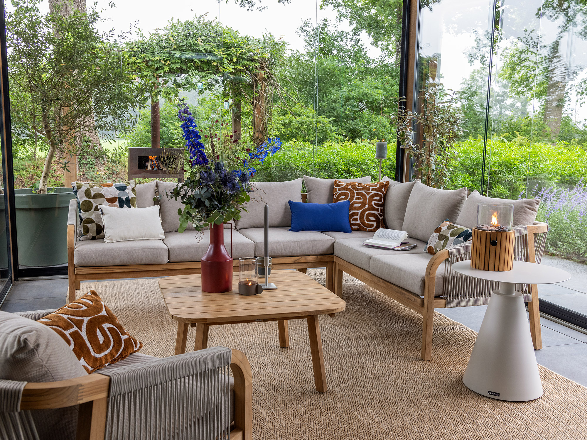 Das Bellagio Perzano Ecklounge-Set bietet Ihnen eine gemütliche und stilvolle Möglichkeit, Ihren Außenbereich zu gestalten. Mit Platz für bis zu fünf Personen ist dieses Set ideal für entspannte Stunden im Garten oder auf der Terrasse. Die bequemen Kissen in den Farben Taupe, Natur und Braun laden zum Verweilen ein und sind dank abnehmbarer Bezüge leicht zu reinigen. Das robuste Teakholz sorgt dafür, dass das Set jedem Wetter standhält und Ihnen lange Freude bereitet. Die Kombination aus natürlichem Teak und dem blauen Möbelrahmen verleiht Ihrem Garten einen modernen und gleichzeitig warmen Look.