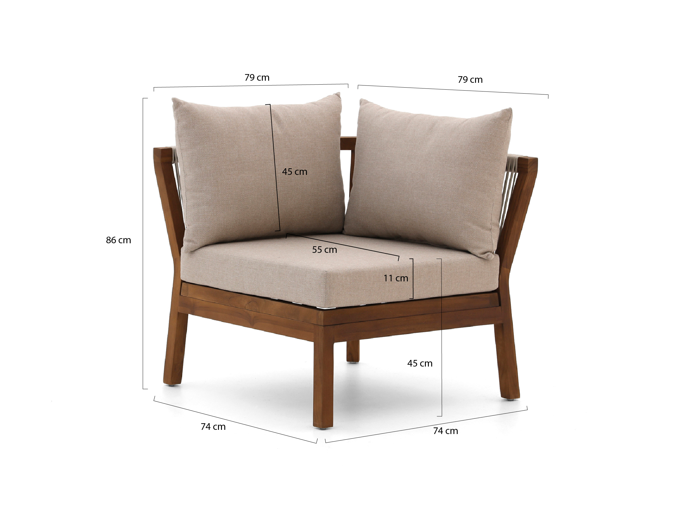 • Teakholz-Gestell: Sie erhalten ein robustes Eckmodul, das das ganze Jahr über draußen stehen kann, ohne dass Sie es ständig verstellen müssen.