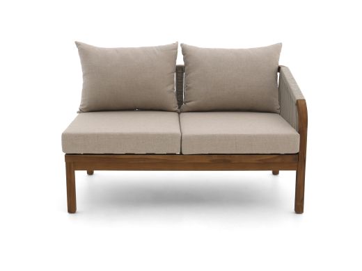 Das Bellagio Perzano Lounge Element mit linker Armlehne ist ein einzelnes Gartensofa für 2 Personen – ideal, wenn Sie Ihr bestehendes Perzano Lounge-Set erweitern oder eine Ecke schließen möchten. Das Teakholz-Gestell ist robust und kann problemlos draußen stehen, während die grauen Kissen für komfortables Sitzen sorgen – ganz ohne lästiges Suchen nach losen Kissen. Dank der linken Armlehne schieben Sie dieses Element einfach an ein Eckelement oder ein weiteres Sofa, sodass Ihre Aufstellung sauber anschließt. Das Rope in Hellgrau sorgt für eine luftige Rückenlehne, die auch an warmen Tagen angenehm ist. Praktisch: Die Kissenbezüge sind abnehmbar, so nehmen Sie sie zum Reinigen im Handumdrehen ab.