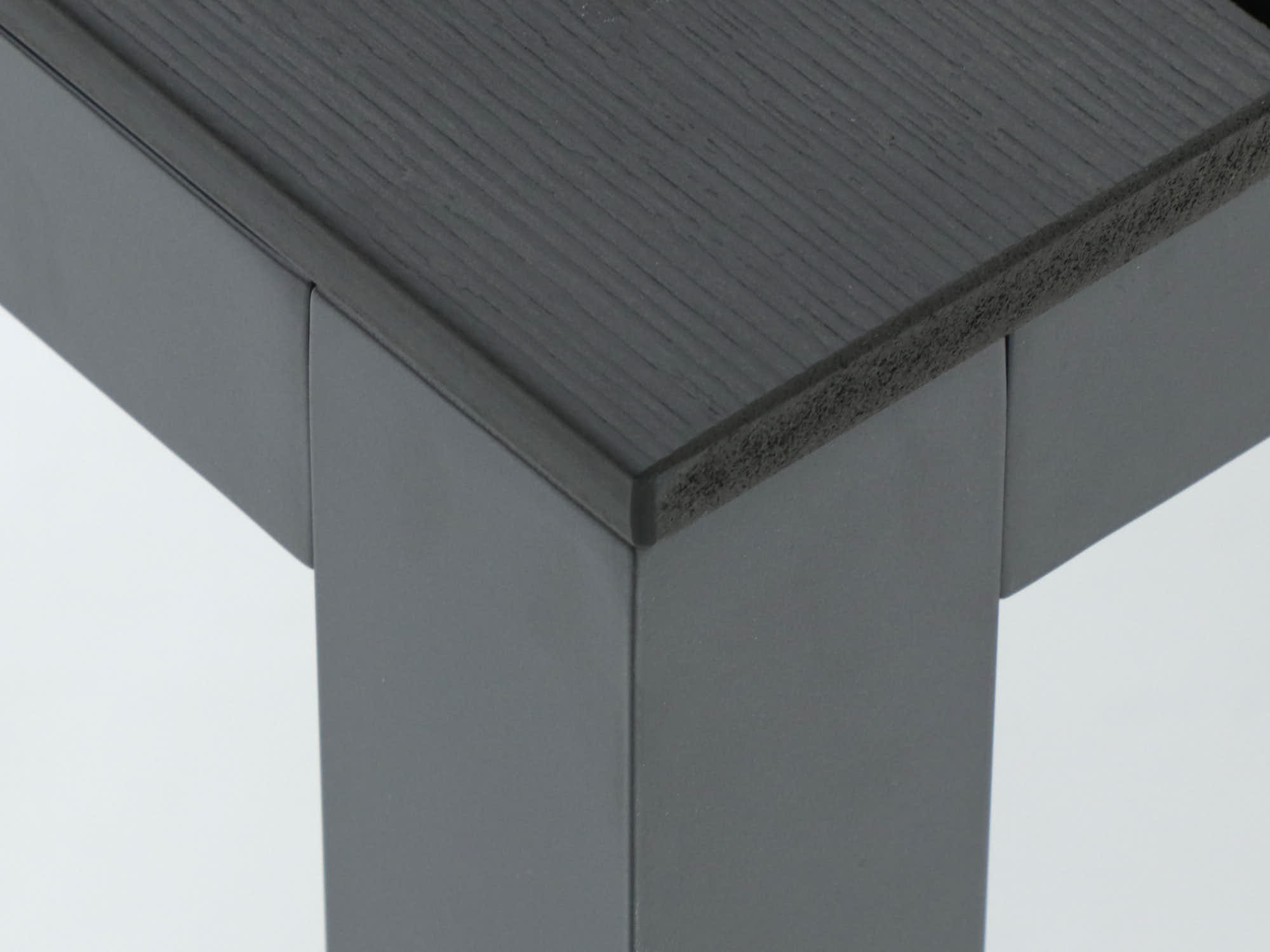 Widerstandsfähige Polywood-Tischplatte: Diese Tischplatte sieht aus wie Holz, ist aber aus Kunststoff. Sie ist wasser- und schmutzabweisend und verzieht sich nicht.