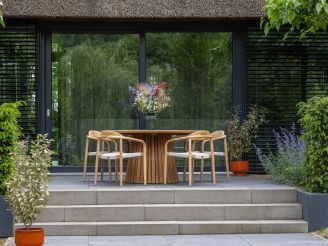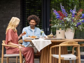 • Runde Form ø130 cm: Sie schauen sich bequem alle an und können bei einem langen Abendessen einfach noch einen zusätzlichen Stuhl dazustellen.