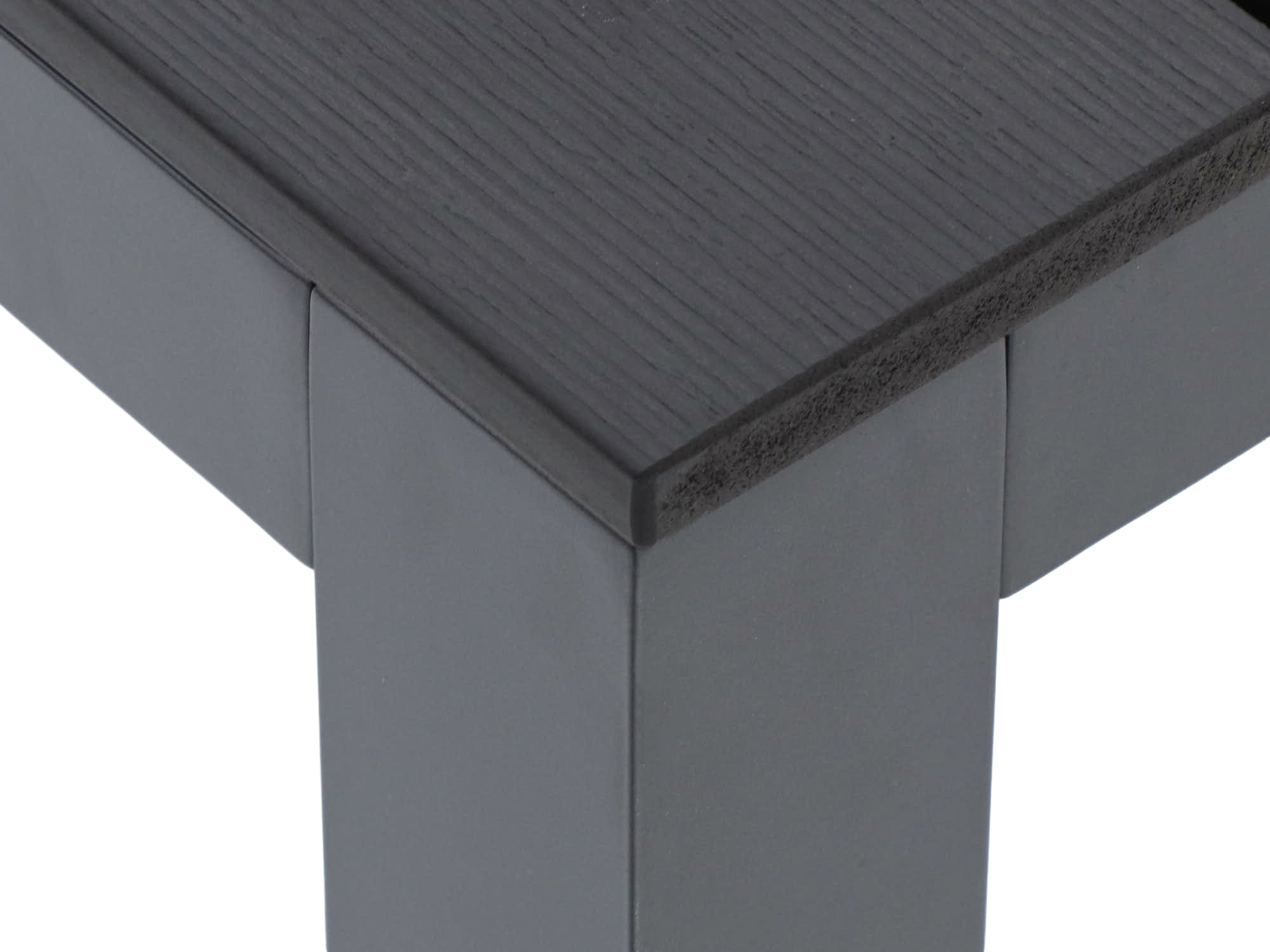 Robustes Polywood-Tischblatt: Sieht aus wie Holz, ist aber aus Kunststoff. Das macht es wasser- und schmutzabweisend und es verzieht sich nicht.