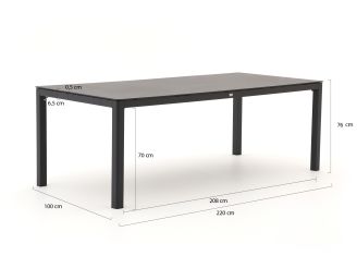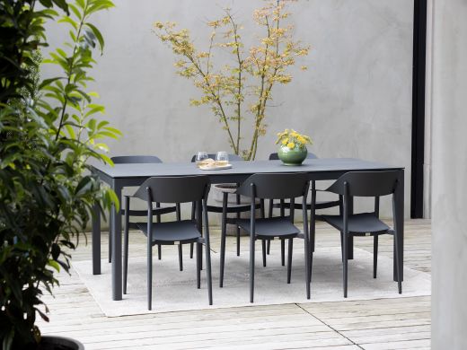 Das Bellagio Valli/La Fonte Gartenmöbel-Set bietet Ihnen eine robuste und stilvolle Lösung für Ihre Terrasse oder Ihren Garten. Mit Platz für sechs Personen ist es ideal für gesellige Abende im Freien. Der Tisch mit einer Länge von 220 cm bietet ausreichend Platz für ein ausgiebiges Dinner. Die Stühle aus Aluminium sind leicht und dennoch stabil, was sie besonders praktisch macht. Das HPL-Tischblatt in Natural Slate Optik ist kratz- und fleckenresistent, sodass Sie sich keine Sorgen um die Pflege machen müssen.