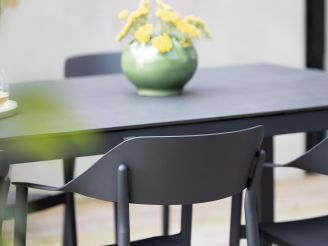 Stabiler Tisch: Der Tisch hat ein HPL Natural Slate Tischblatt, das kratz- und fleckenresistent ist. Das bedeutet, dass es auch bei intensiver Nutzung lange schön bleibt.