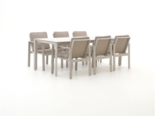 Das Bellagio Vazzola/Sestino Gartenmöbel-Set ist eine großzügige Essgruppe für 6 Personen, ideal wenn Sie gerne mit Familie oder Freunden draußen essen. Das Set wird mit Kissen geliefert, sodass Sie sofort weich und bequem sitzen und nicht erst nach losen Kissen suchen müssen. Die weiße Sintered Stone Tischplatte sorgt auf Ihrer Terrasse für eine klare, ruhige Optik und ist zugleich sehr robust und bestens für den Außenbereich geeignet. Suchen Sie ein Set, an dem Sie regelmäßig frühstücken, etwas trinken und essen, liegen Sie mit diesem 220 cm langen Tisch genau richtig.