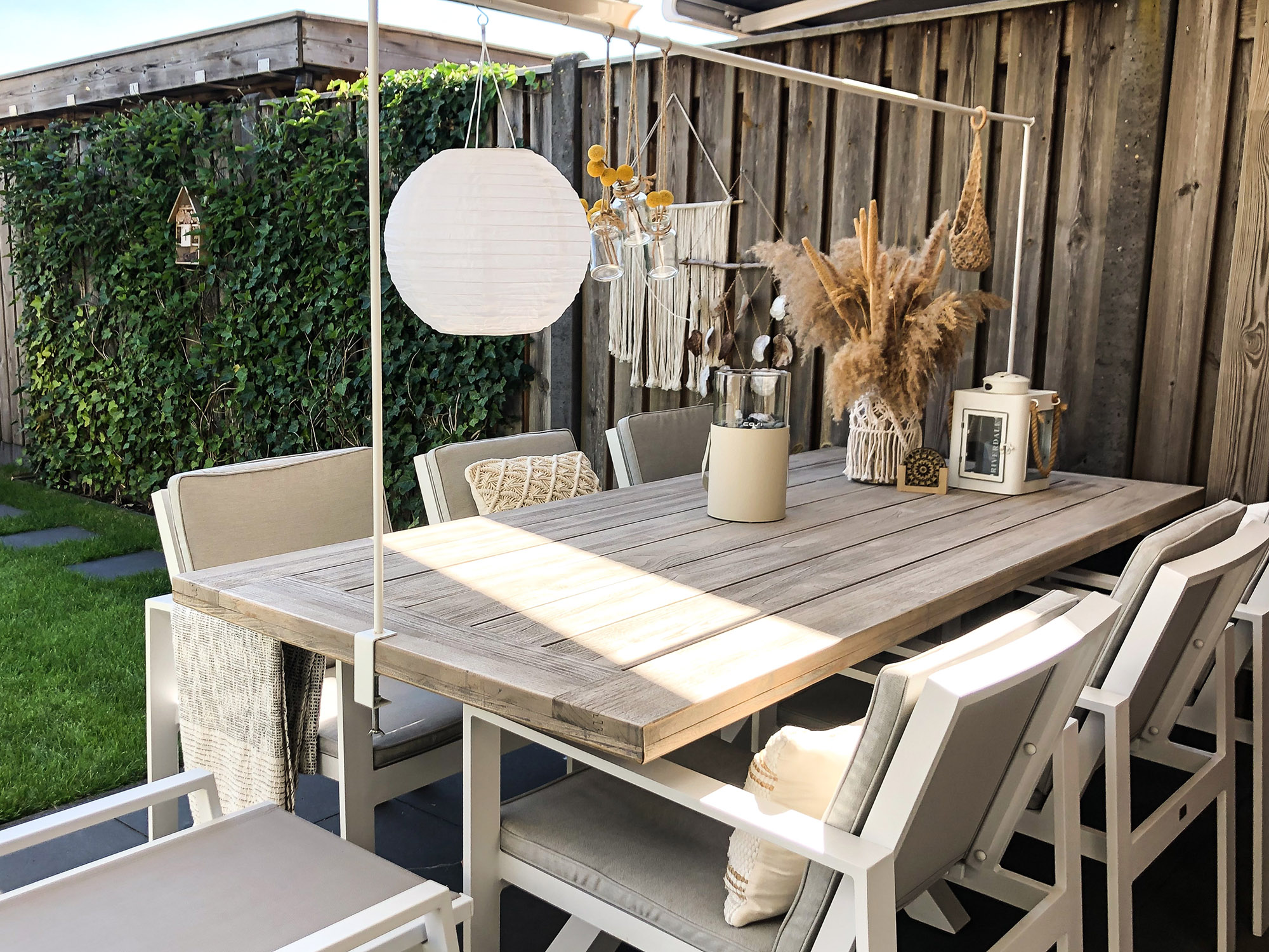 • Aluminium-Gestell: Das Gestell ist stabil, aber leicht, sodass Sie das Set leichter verschieben können, wenn Sie Ihre Terrasse neu gestalten möchten.