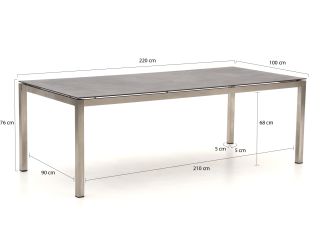• Rechteckiger Tisch mit 220 cm Länge: Sie haben genug Platz, um mit 6 Personen großzügig zu sitzen und zudem Schalen, Gläser und einen großen Salat unterzubringen.