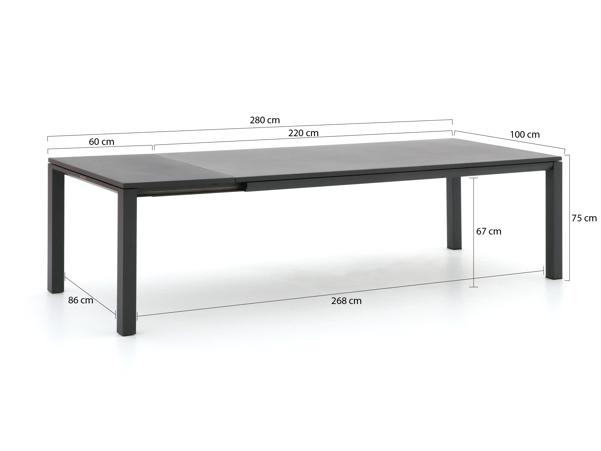 • Ausziehbare Tischplatte: Der Tisch lässt sich von 220 cm auf 280 cm verlängern, sodass Sie flexibel auf die Anzahl Ihrer Gäste reagieren können.