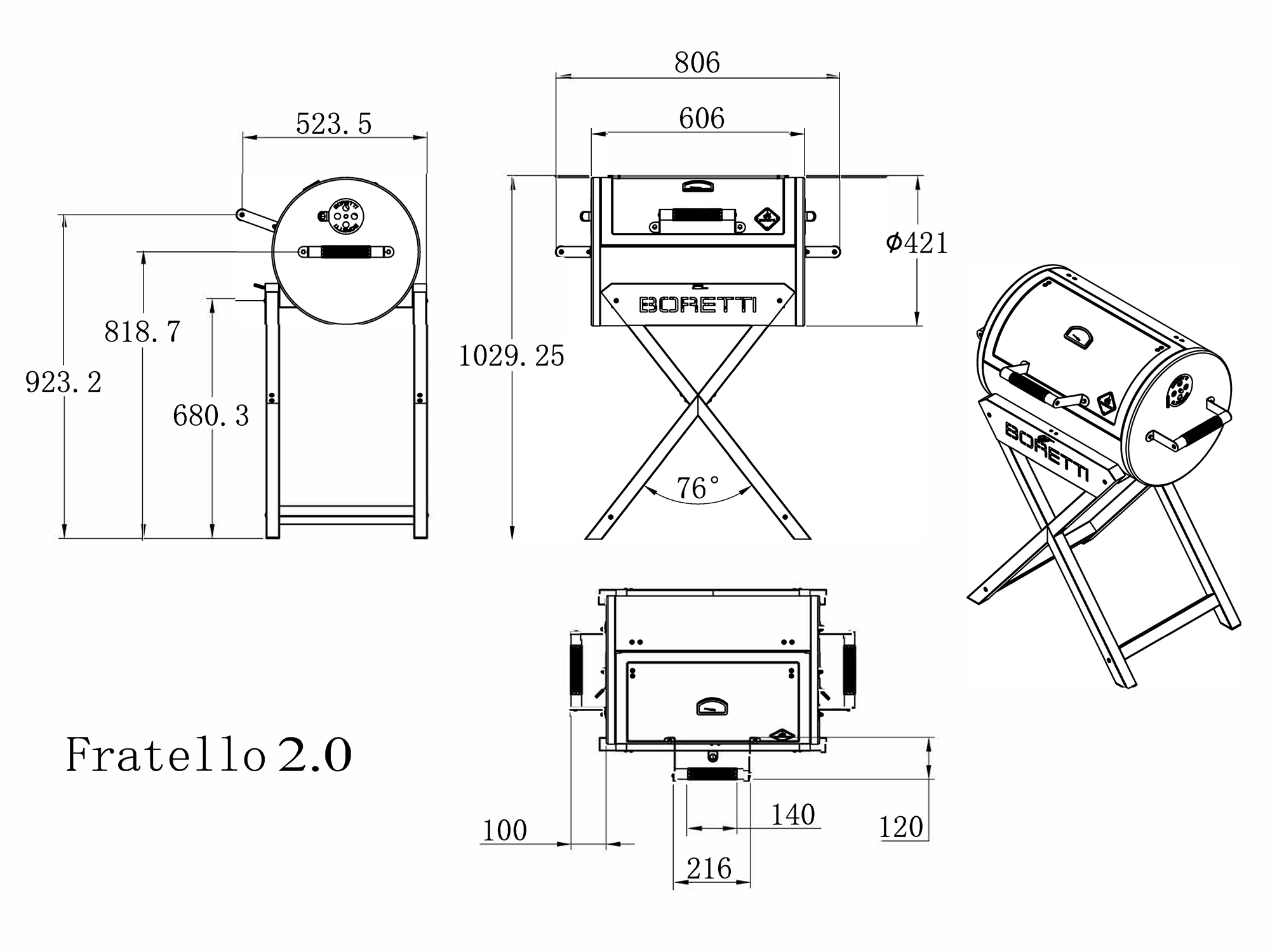 Boretti Fratello 2.0 Holzkohlegrill 52x81x112 cm