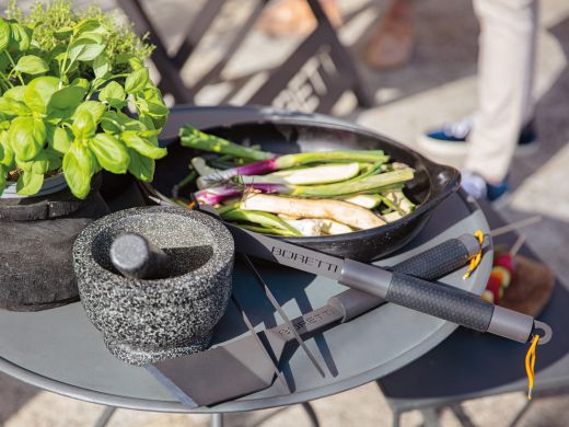 • So drehen und bewegen Sie Fleisch- und Gemüsestücke mühelos, ohne mit einer Grillzange hantieren zu müssen
