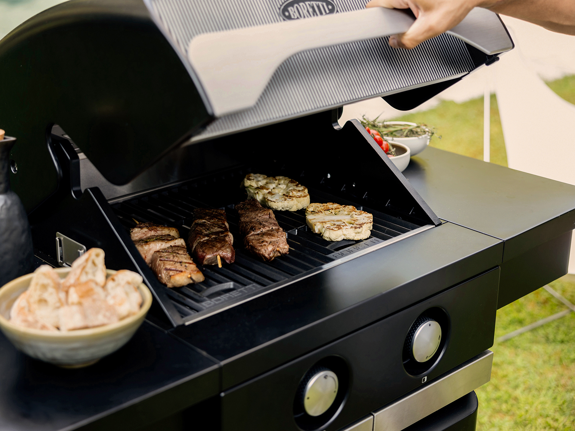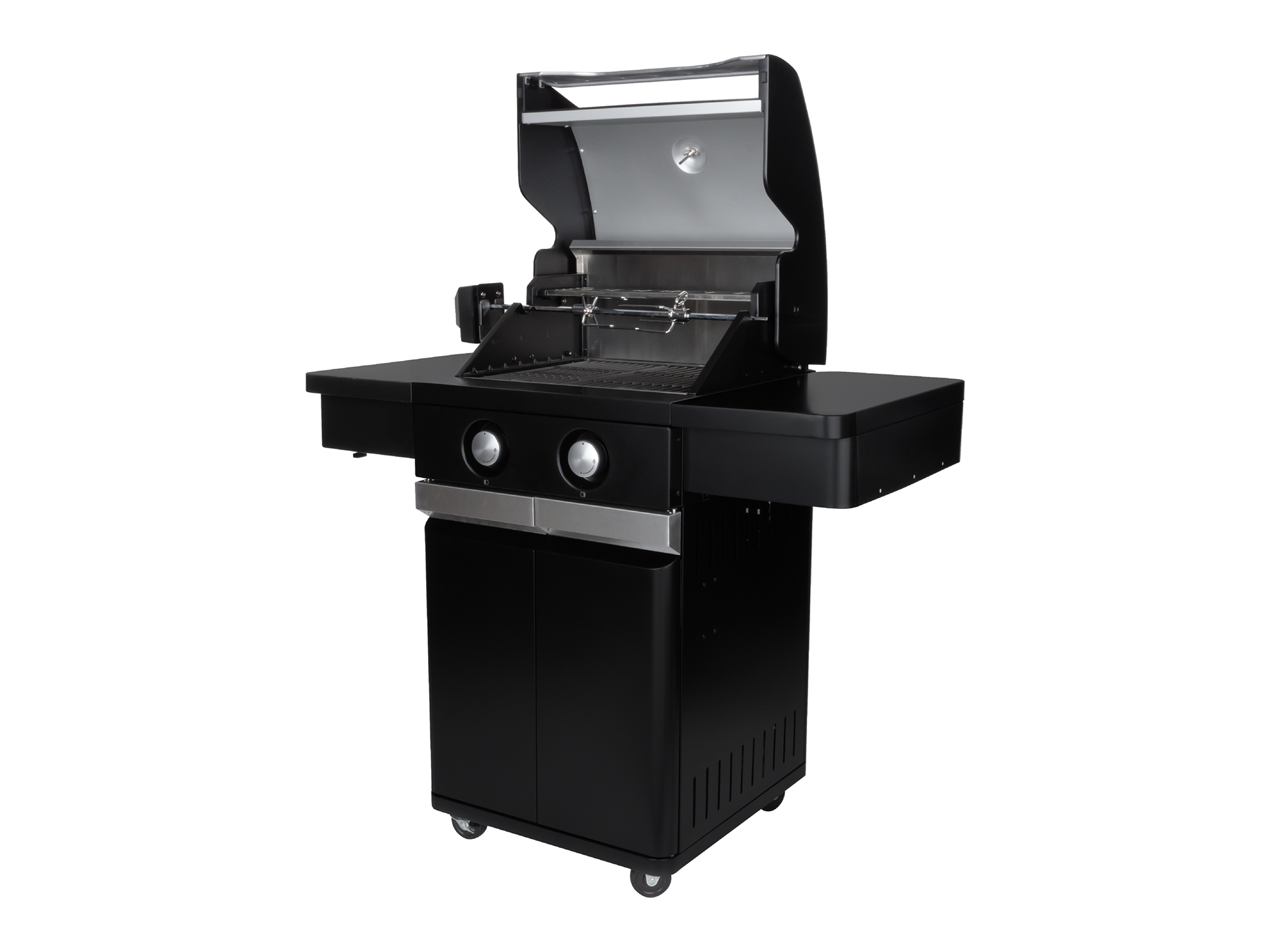 Die beiden Hauptbrenner mit je 3,6 kW sorgen für eine schnelle und gleichmäßige Hitzeverteilung. So richten Sie ganz einfach verschiedene Temperaturzonen auf Ihrem Grill ein – zum Beispiel eine sehr heiße Zone zum scharfen Anbraten eines Steaks und eine gemäßigte Zone zum schonenden Garen von Gemüse oder Fisch. Durch den doppelwandigen Deckel wird die Wärme besser gehalten und Sie können indirekt grillen, ideal für größere Fleischstücke, die etwas länger brauchen.